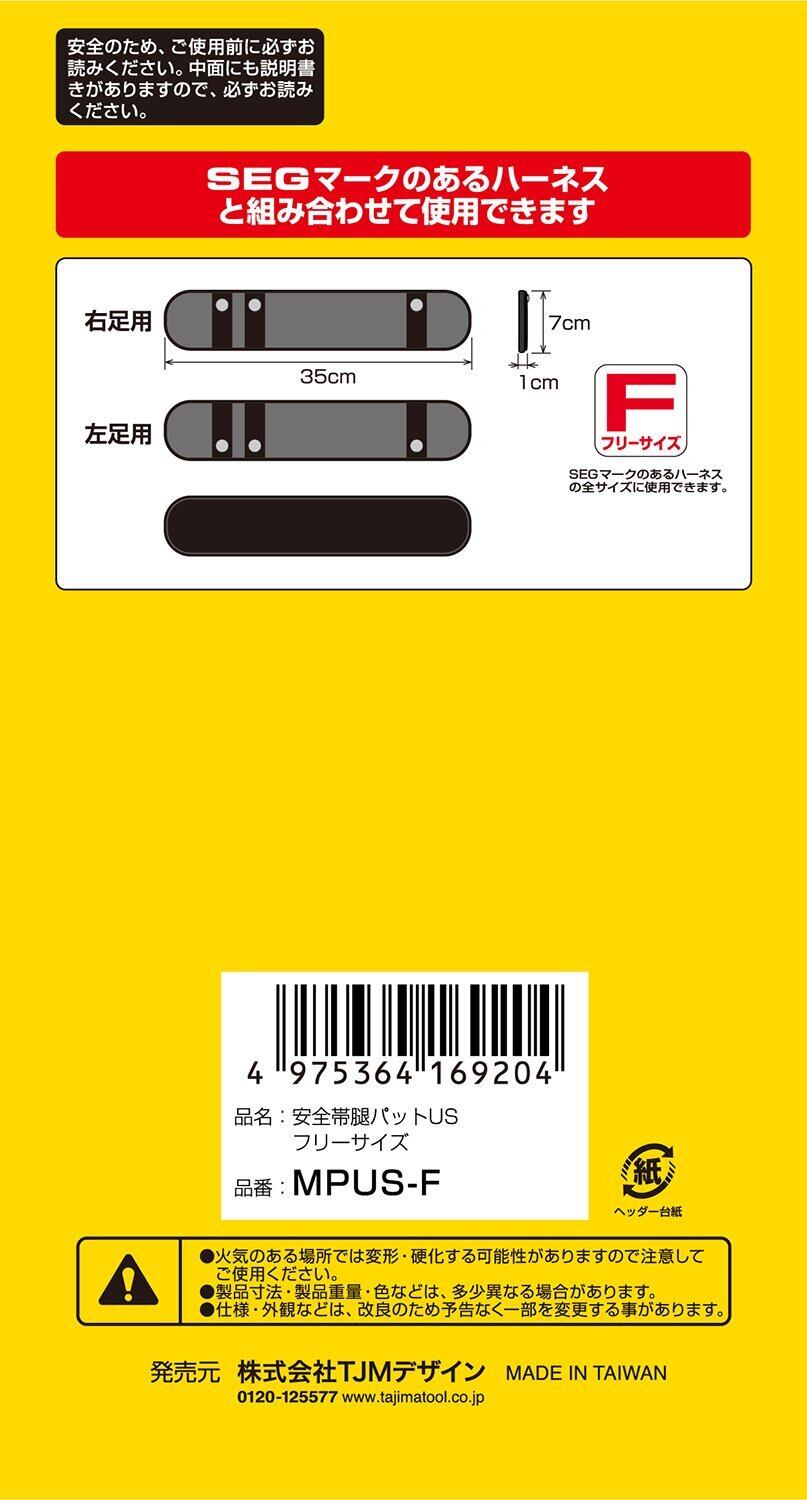 タジマ 安全帯 腿パットUS しなやかにフィット ハーネスのすれ防止と痛みを軽減 ベルトの絡まりやねじれを防止 フリーサイズ MPUS-F