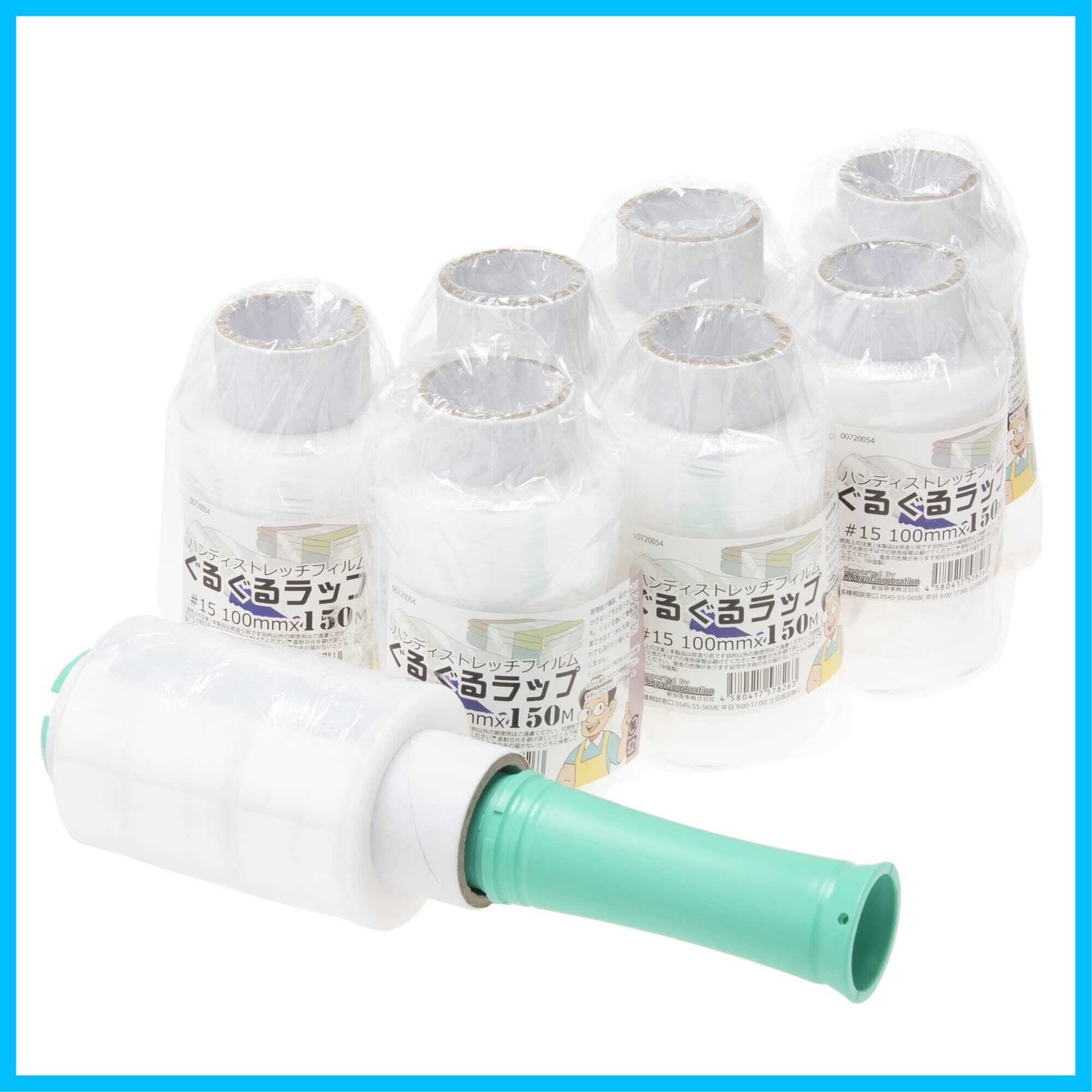 紺屋商事(Konya Corporation) ハンディラップ ストレッチ フィルム ぐるぐるラップ (8本入り本体セット)梱包用ラップ 透明 #15 100mmx150m