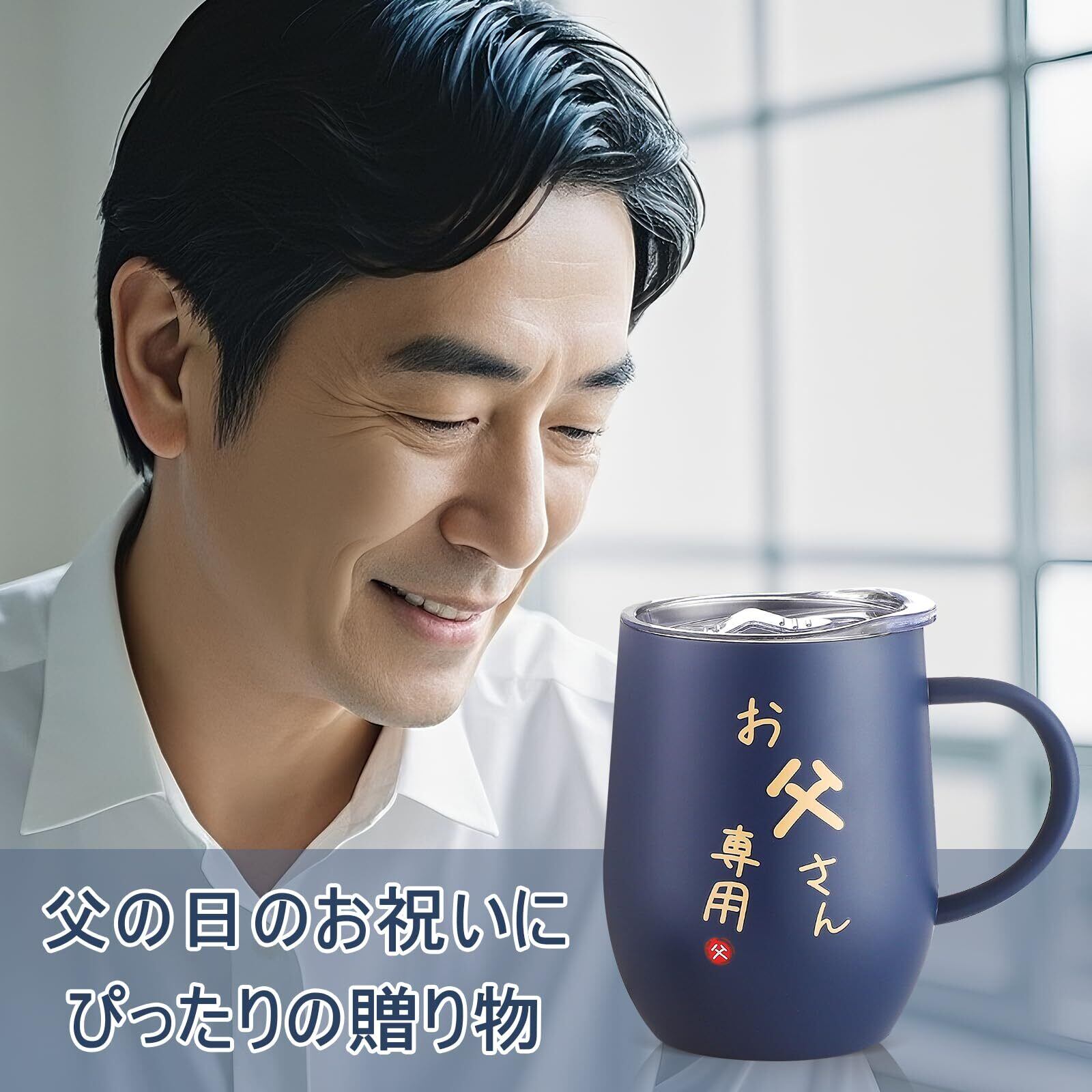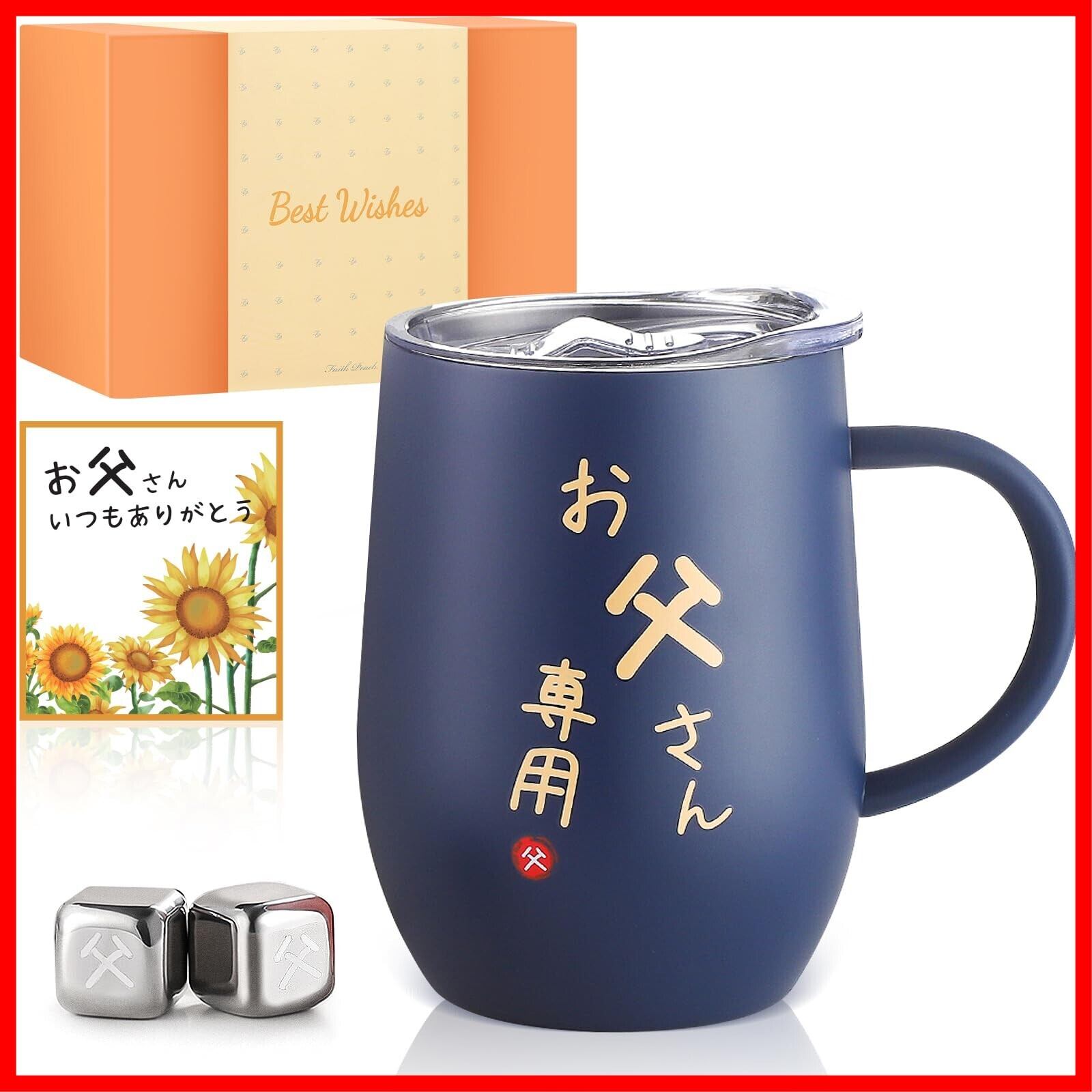 父親 誕生日プレゼント 父の日 ステンレスタンブラー 取っ手付き お父さん プレゼント 専用アイスキューブ付属 夫 誕生日プレゼント 両親 結婚記念日プレゼント 退職祝い 還暦祝い 喜寿祝い 密閉ふた付き メッセージカード付き 保温保冷 真空断熱 350ml(ネイビーブルー)