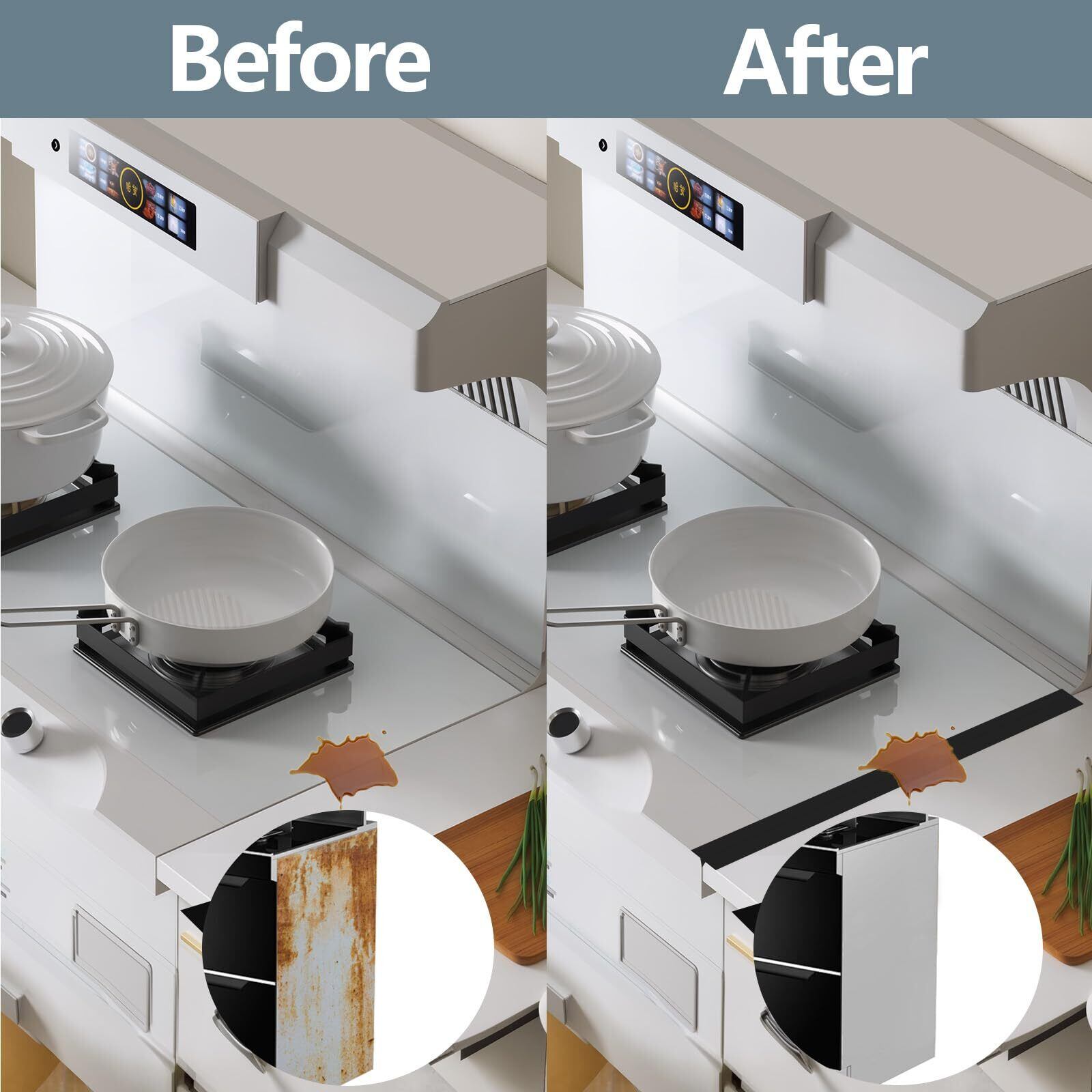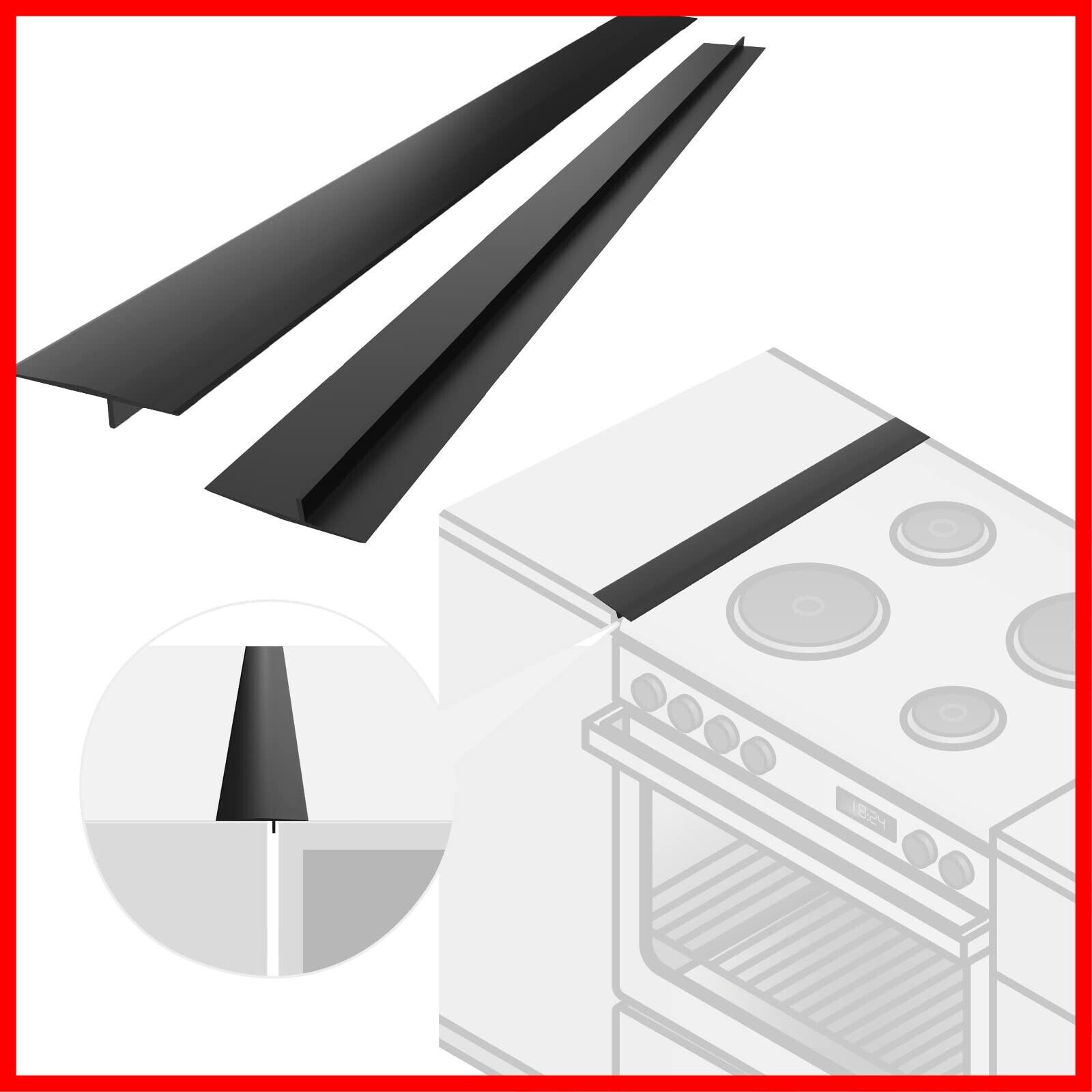 ストーブカウンターシリコン製ギャップカバー、コンロカバー、ロングギャップフィラーは、キッチンカウンター、ストーブ、オーブン、洗濯機に使用できます、63cm長さ2枚黑