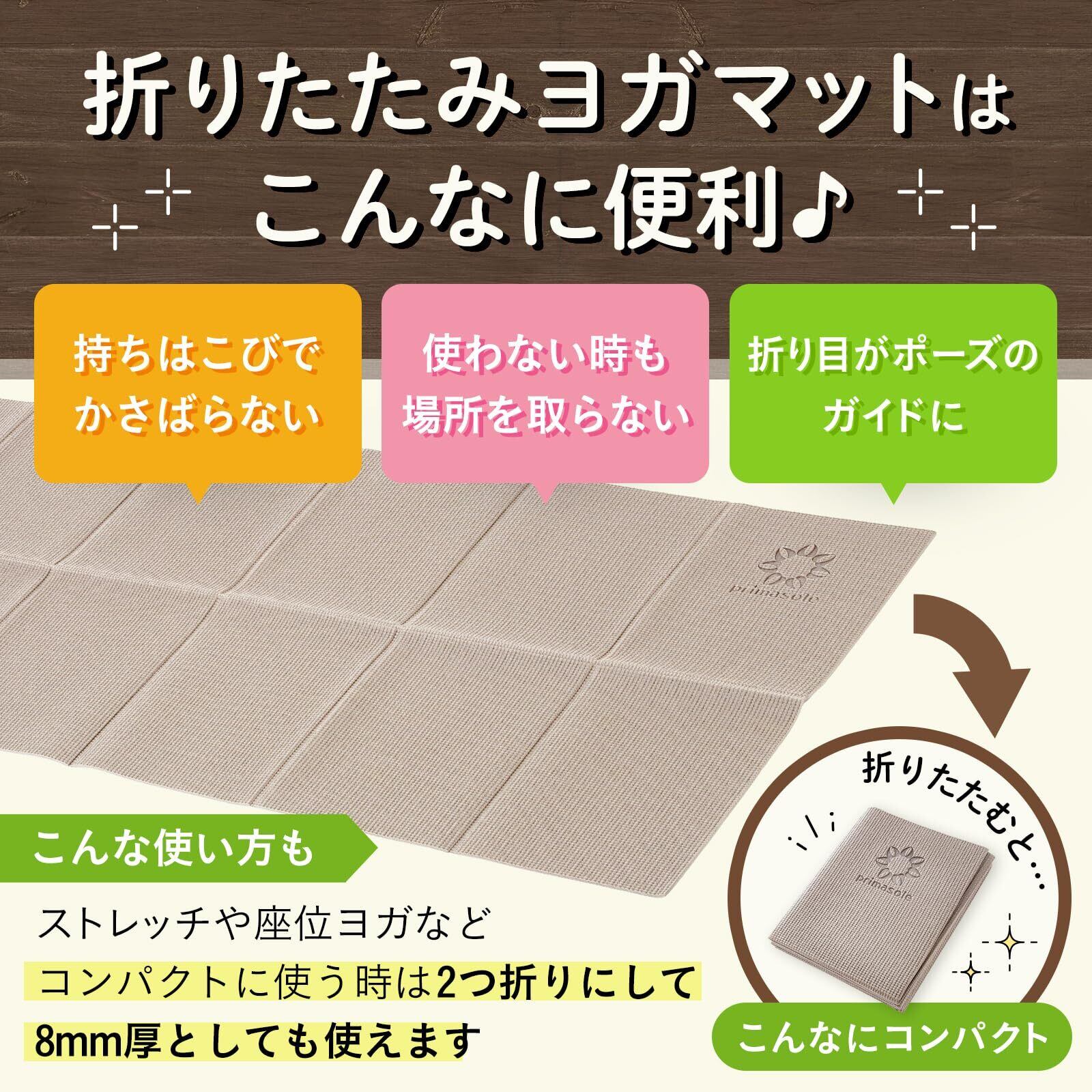 primasoleのヨガマット折りたたみタイプは4mmの厚さなのでとても軽く、折りたためば25cm×31cmのコンパクトサイズに。