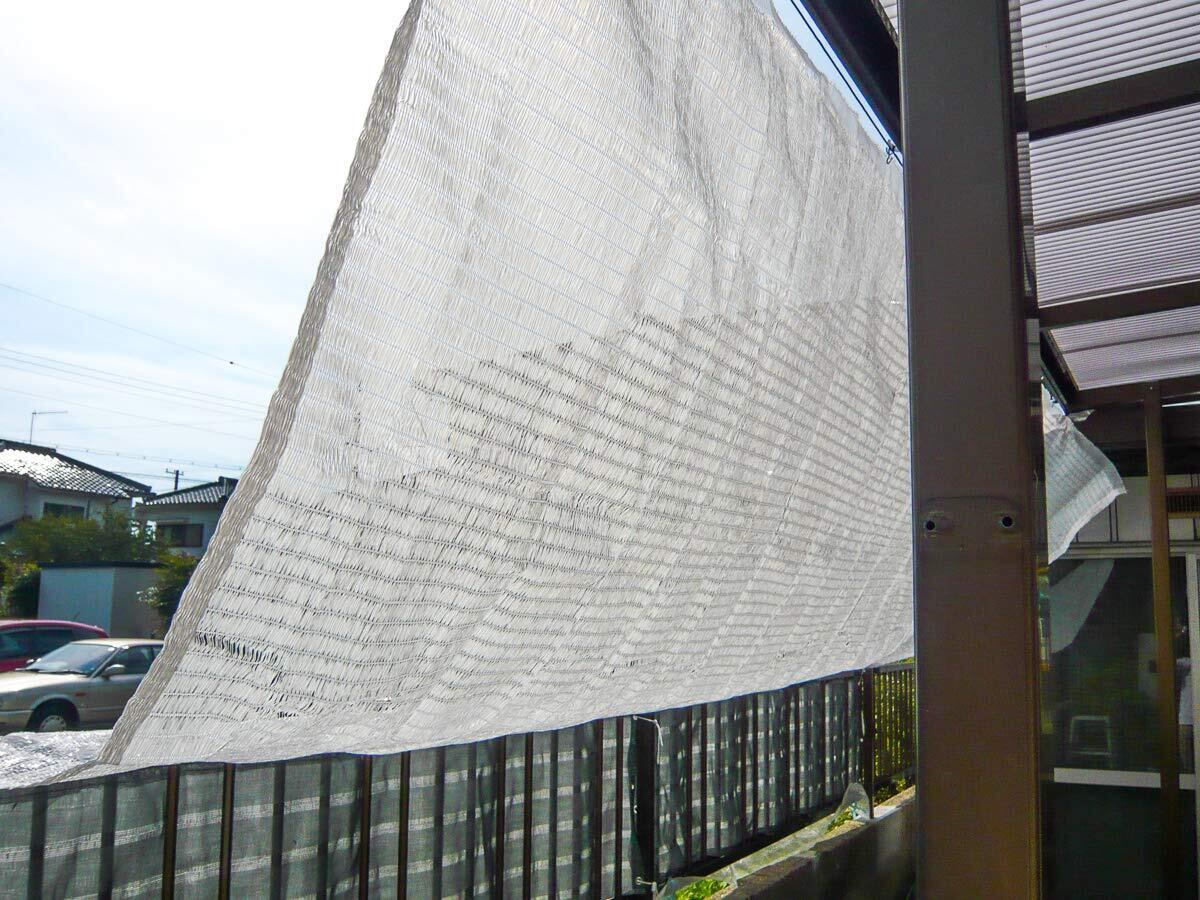 日本製の遮光、遮熱ネット。見た目の明るさは残したまま、温度上昇防止剤の効果で熱線をカットしネット下の環境を整えます。設置には別売りのネット専用吊り具や必要に応じロープ、支柱などをご用意ください。カットすると、切断面の糸がほつれる場合があります。