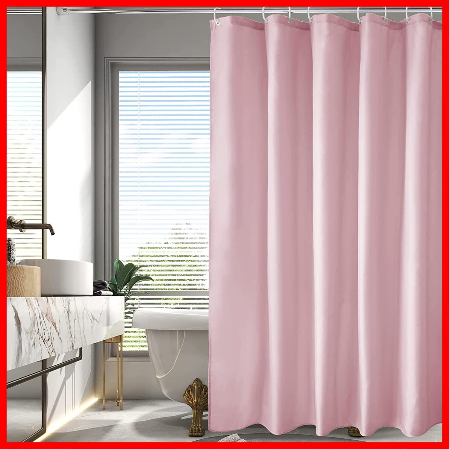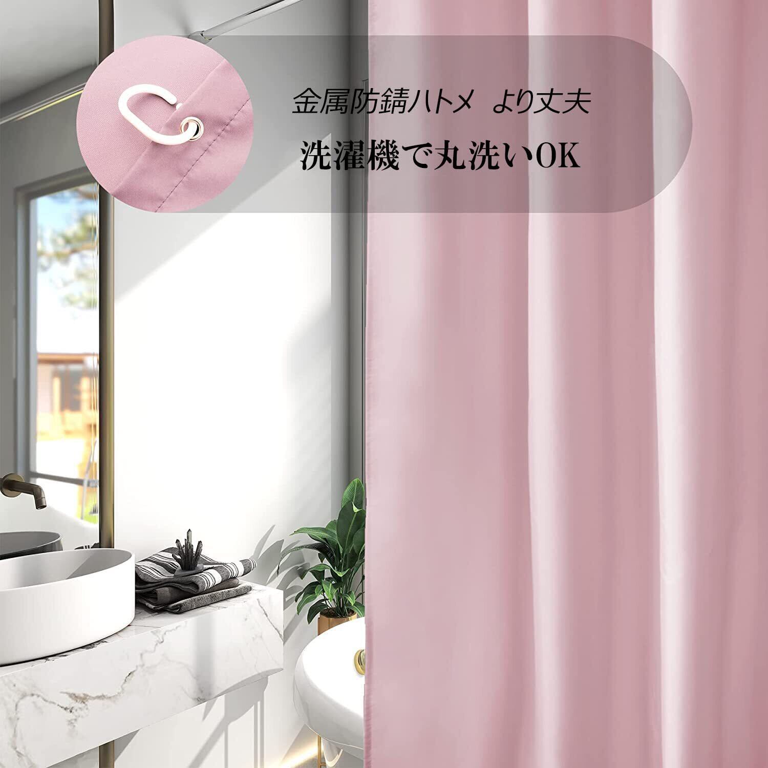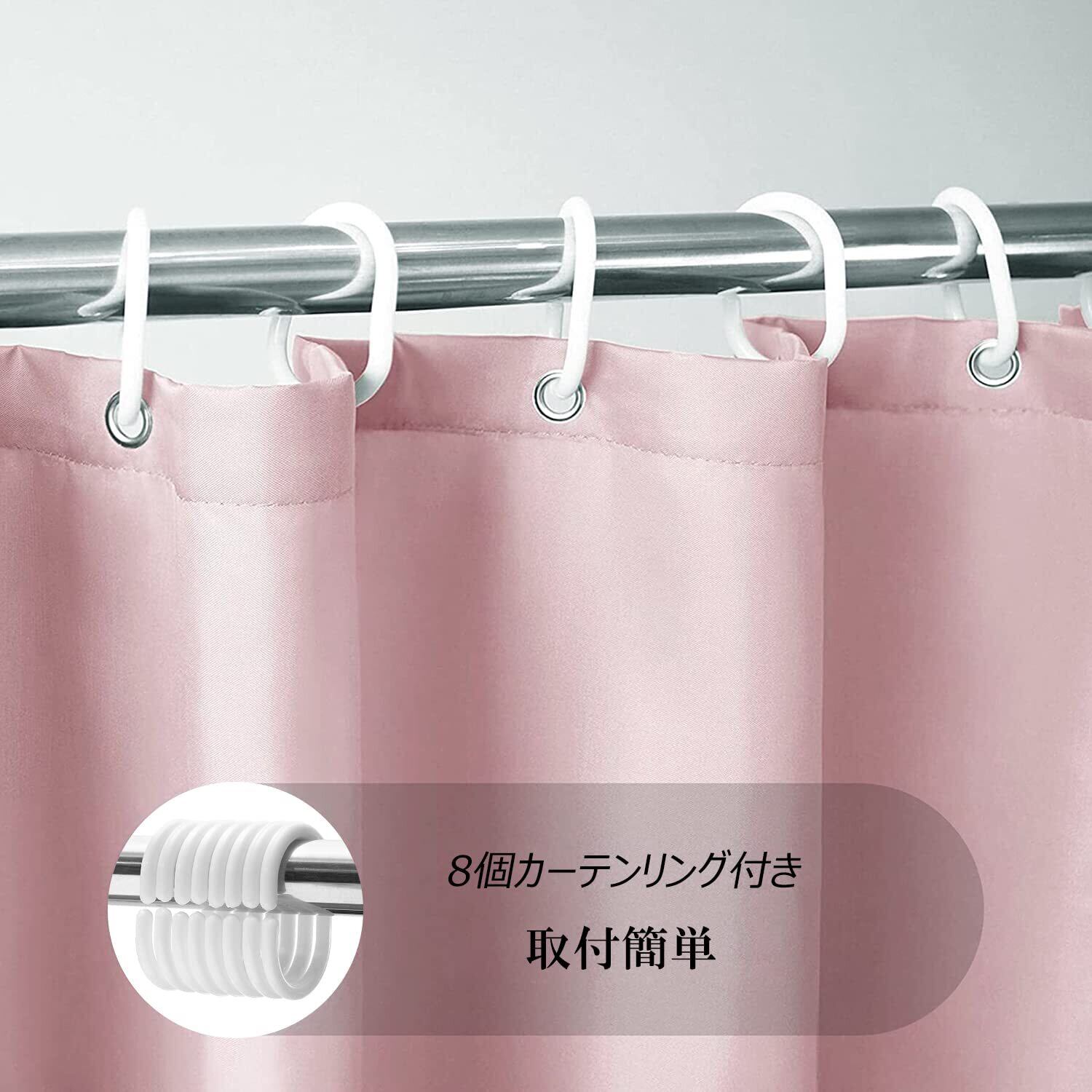 AooHome シャワーカーテン 150cm丈 防カビ 防水 ユニットバス お風呂カーテン 軽量 速乾 ホテル 高級 無地 バス用品 リング付き ピンク 120x150cm