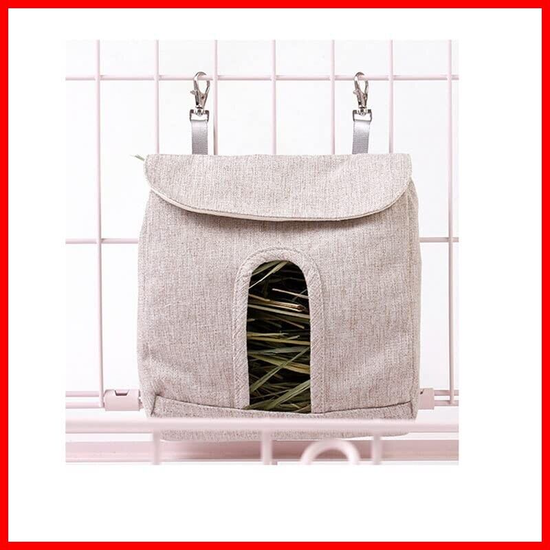 うさぎ 牧草入れフィーダー モルモット 小動物用 干し草の餌袋干し草 ゲージ用省スペース清潔 衛生的 オクスフォード素材 フィーダー 食器 吊るし餌袋 ハムスターモルモットグレー (L-30*24cm,グレー)