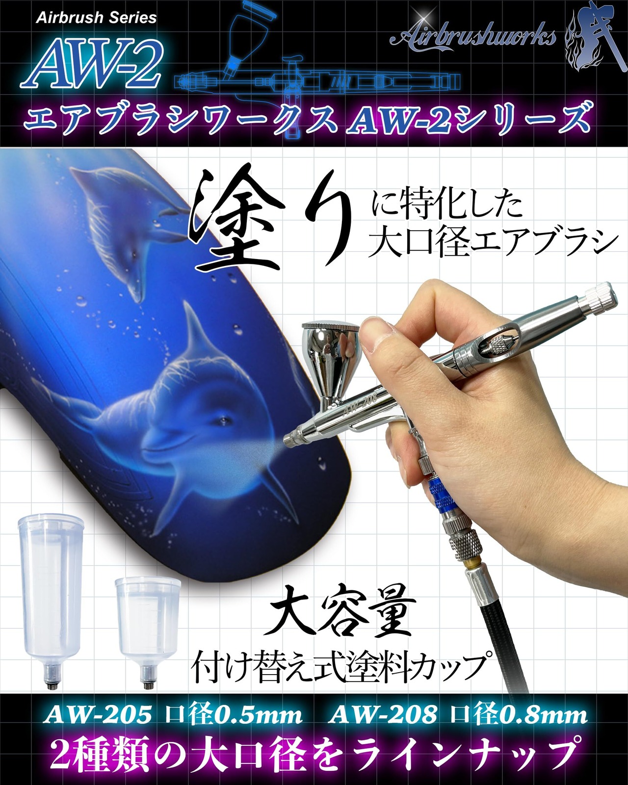 【エアブラシワークス】エアブラシAW-2シリーズ 口径0.5mm 0.8mm ハンドピース (AW-205 口径0.5mm)