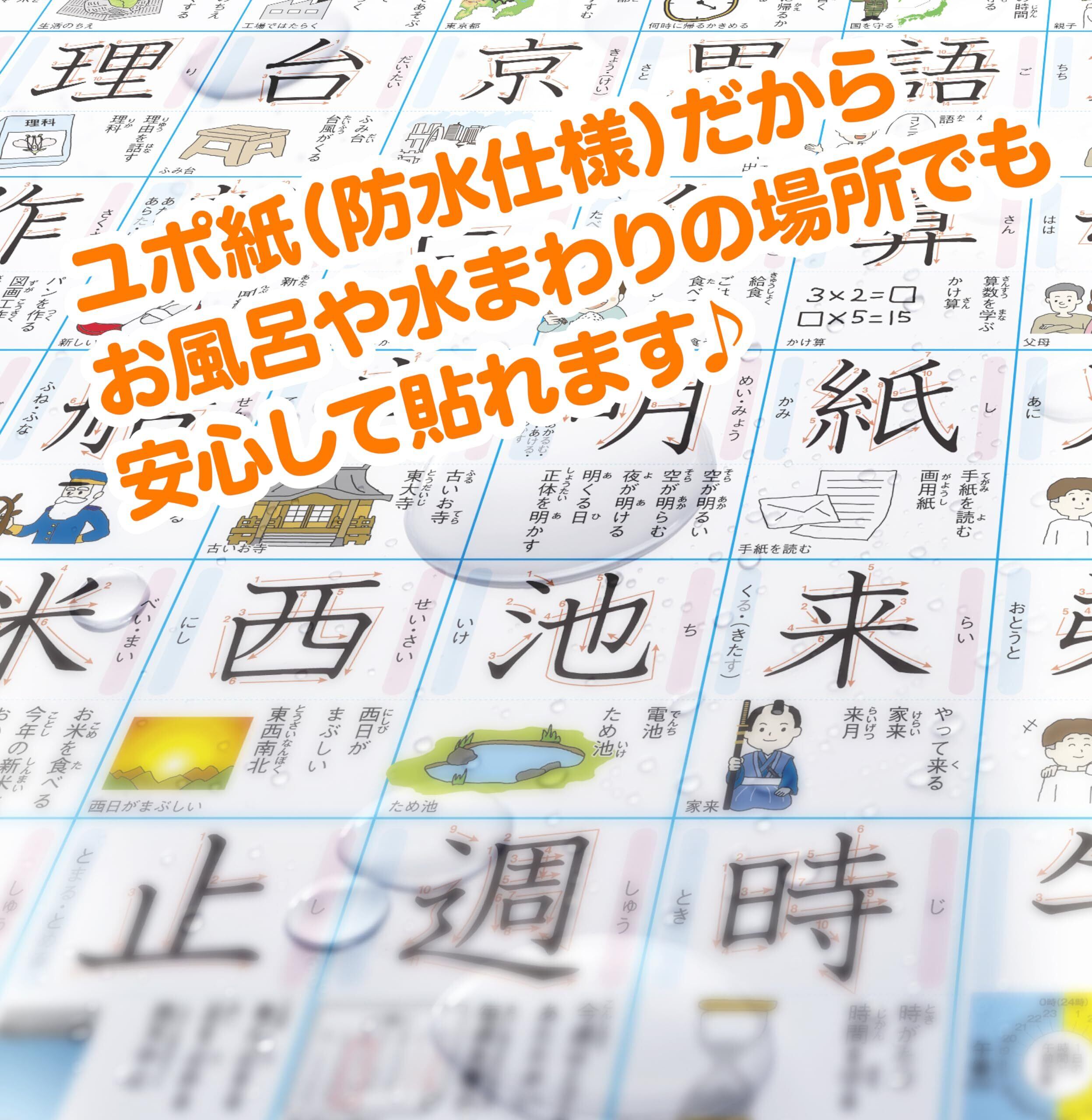 小学2年生が習う漢字(160字)が学べるお風呂ポスター。