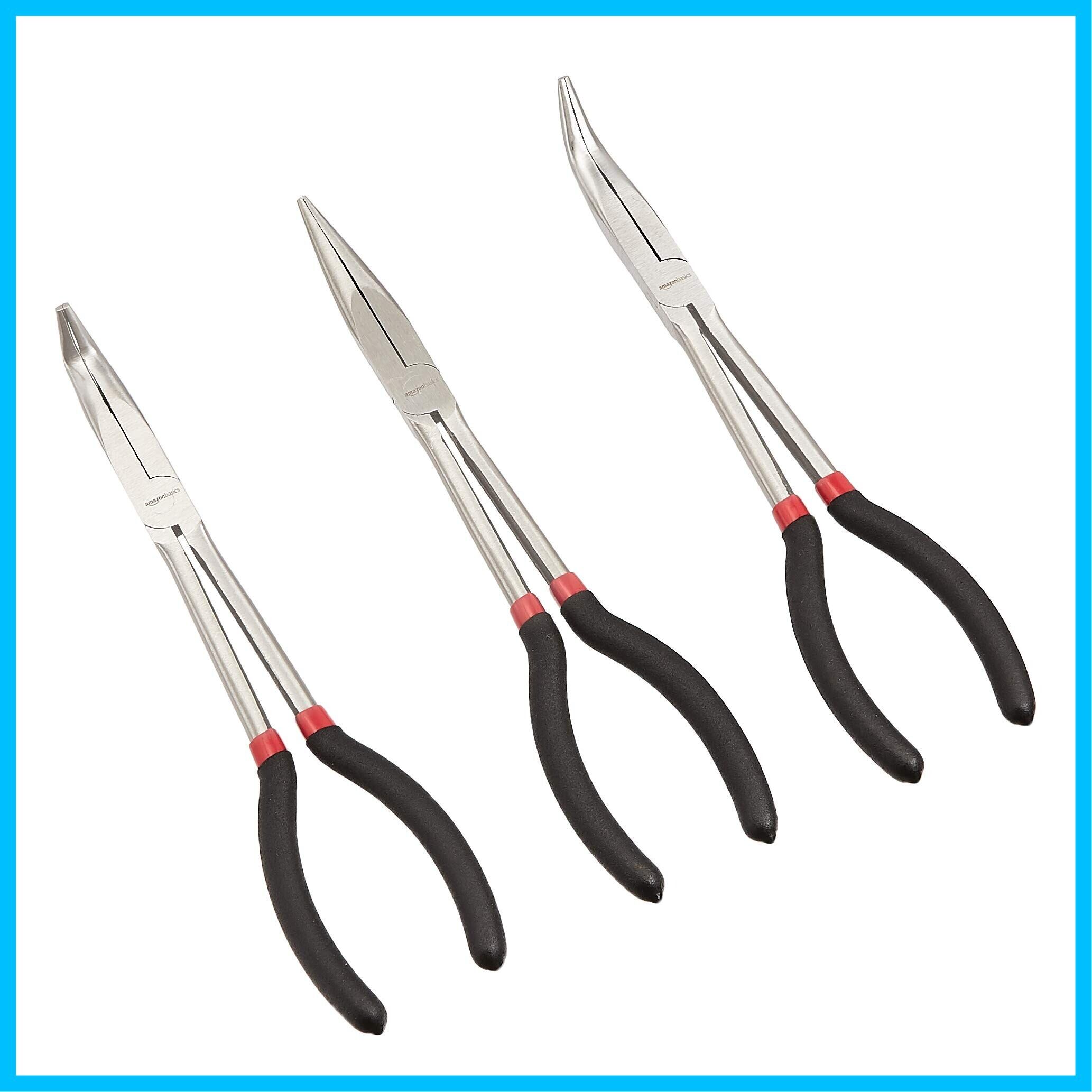 Amazonベーシック 工具セット プライヤーセット 3ピース ロングリーチ, シルバー, ブラック