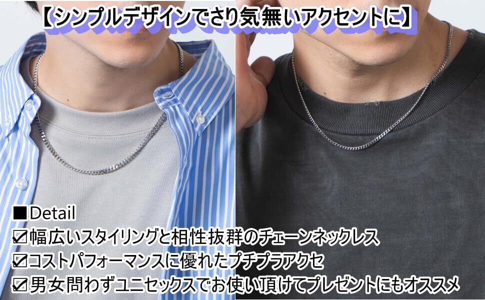 シンプルなデザインで幅広いスタイリングと相性抜群のチェーンネックレス