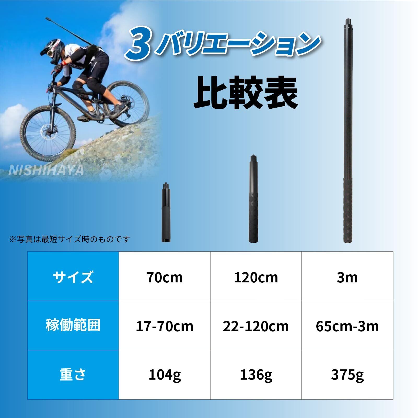 にしはや insta360 自撮り棒 調節可能な インスタ360 自撮り棒 X4 X3 ONE X2 EVOカメラ に対応 (120cm)