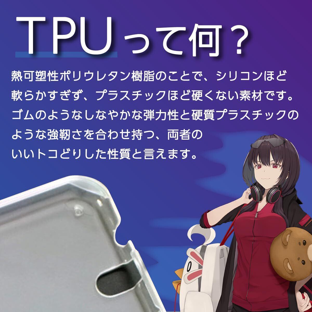 ※製品仕様 素材には素材には TPUを採用、 ACアダプタやヘッドホンなどの周辺機器も、カバーを装着したまま使用可能なケースになっております。