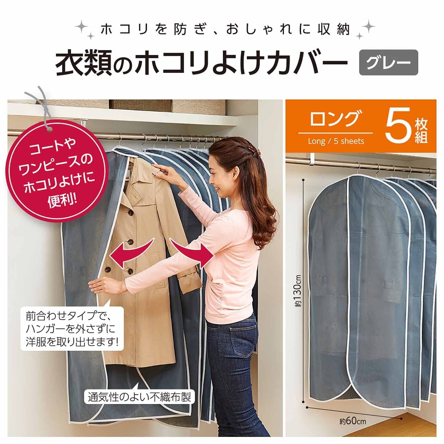 アイメディア(Aimedia) 衣類カバー 防塵カバー スーツカバー ロング 5枚組 埃除け 防汚 衣装カバー コート ジャケット 収納袋 不織布 衣類のホコリよけカバー