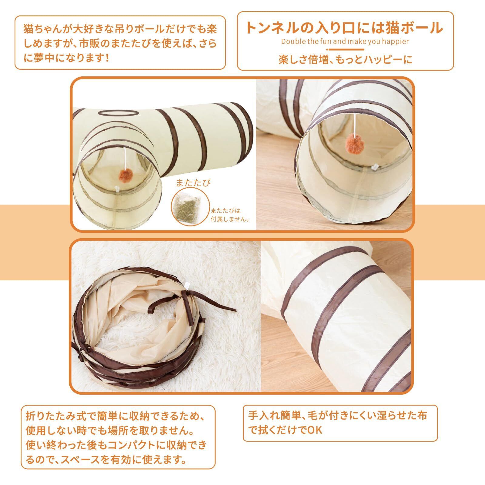 SunStarsPets 猫トンネル トンネル好きペット用おもちゃ 折りたたみ式 キャットトンネル おもちゃボール付き 猫の遊び場、運動不足解消、ストレス発散 にゃんこ一人遊び (T型)