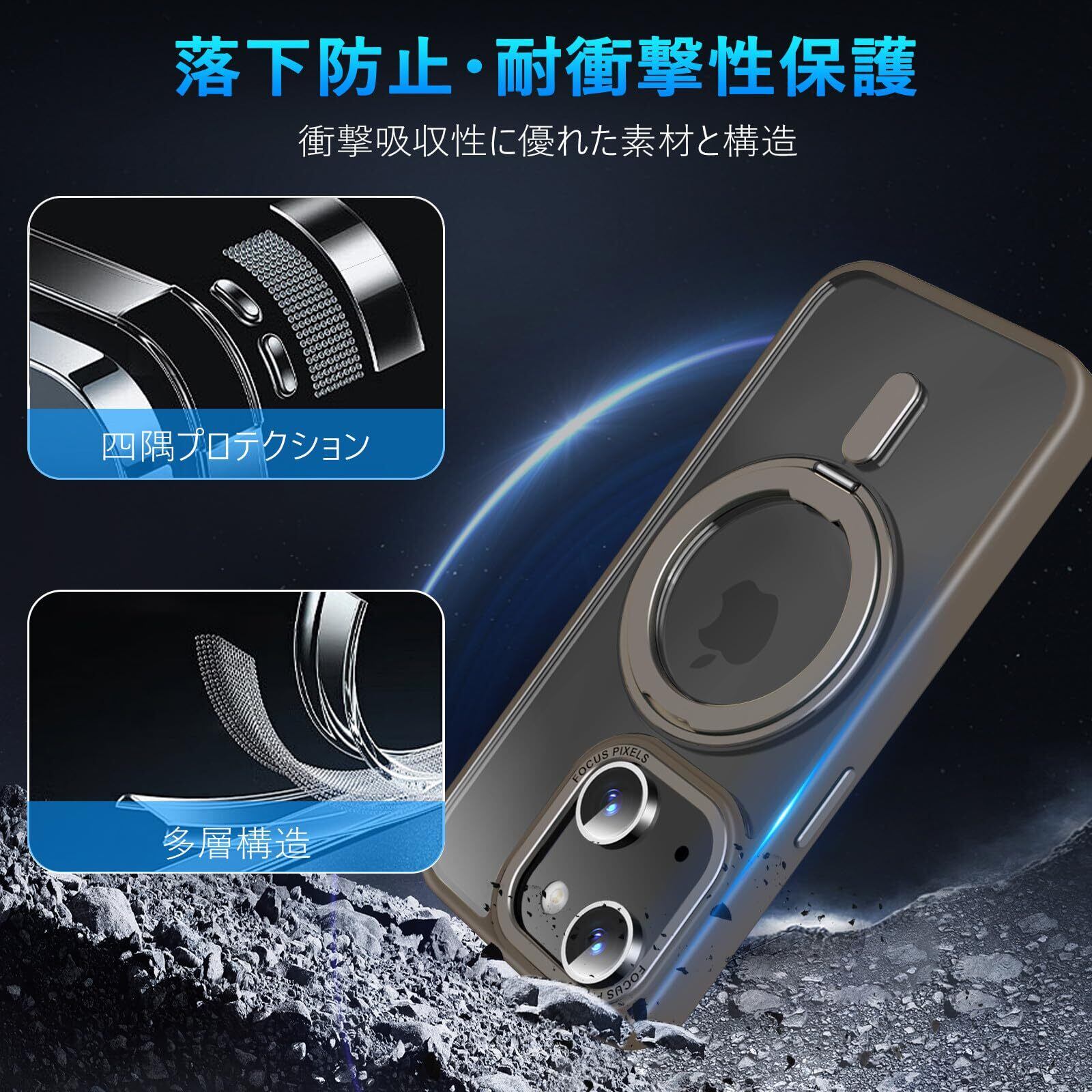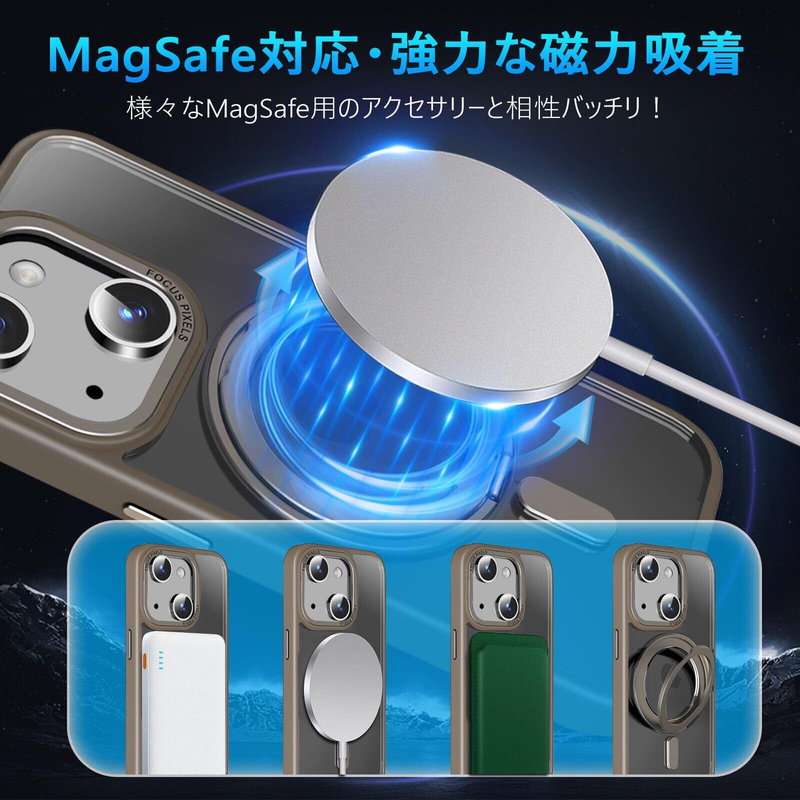 【MagSafe対応・強力な磁力吸着】背面に薄くて強いマグネット内蔵しています、吸着力を高めて、安定感をアップしてエネ損失なしの快速ワイヤレス充電できる。ケースをつけたままマグセーフ機能を快適に使用できます。車載ホルダーでの使用時もとても安心感溢れ、様々なMagSafe用のアクセサリーと相性バッチリ!より安全、安定、急速なワイヤレス充電体験をもたらします。ご注意:この製品はすべての Magsafe デバイスと互換性がありますが、Qi フイャレス充電には適していないため、購入する前にこの点を考慮してください