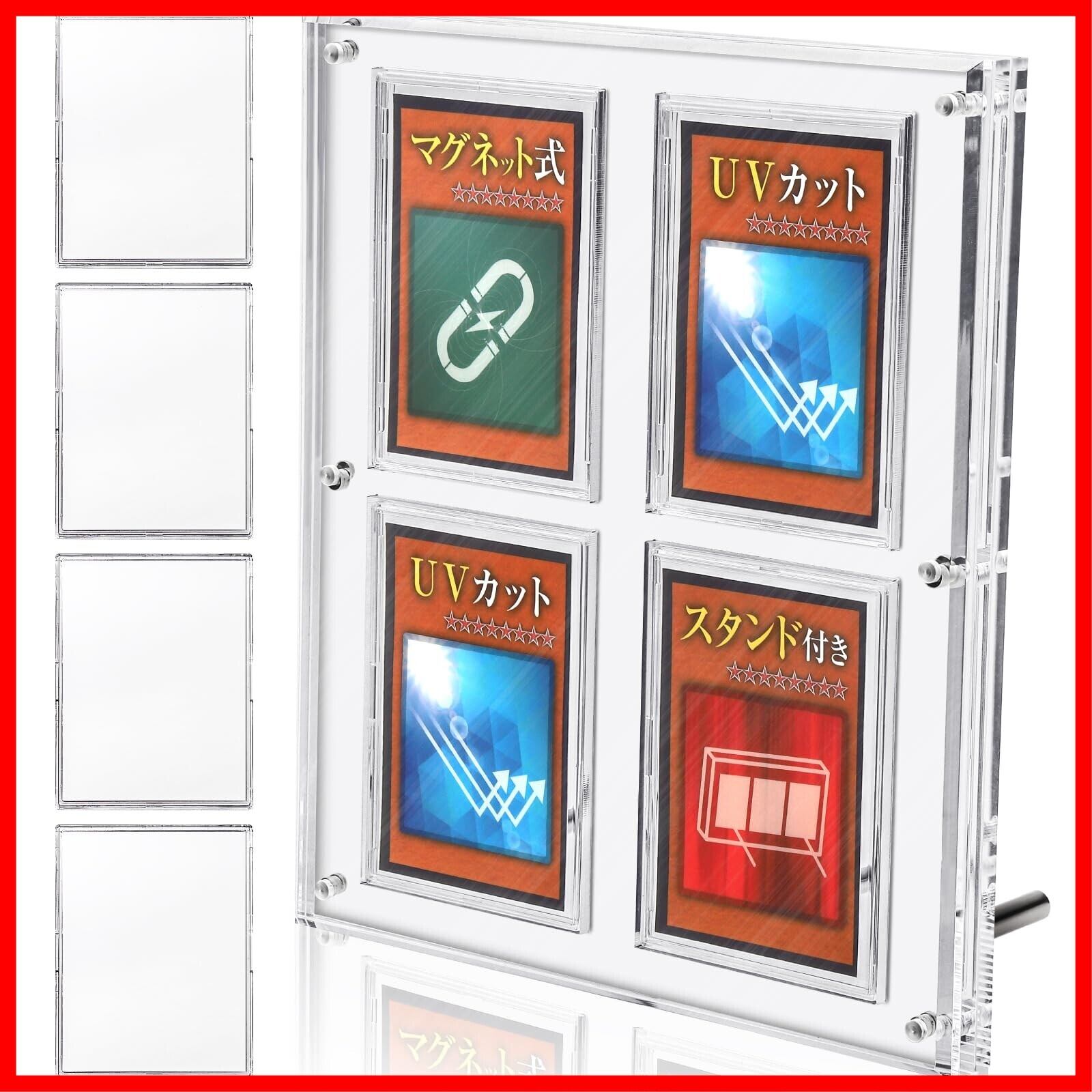 【厚さ1.8㎝の高級仕様】アクリル本舗 スクリューダウン UVカット マグネットローダー ディスプレイケース スタンド 付き カードケース トレーディングカード トレカ 対応 (クリア, 4枚用)