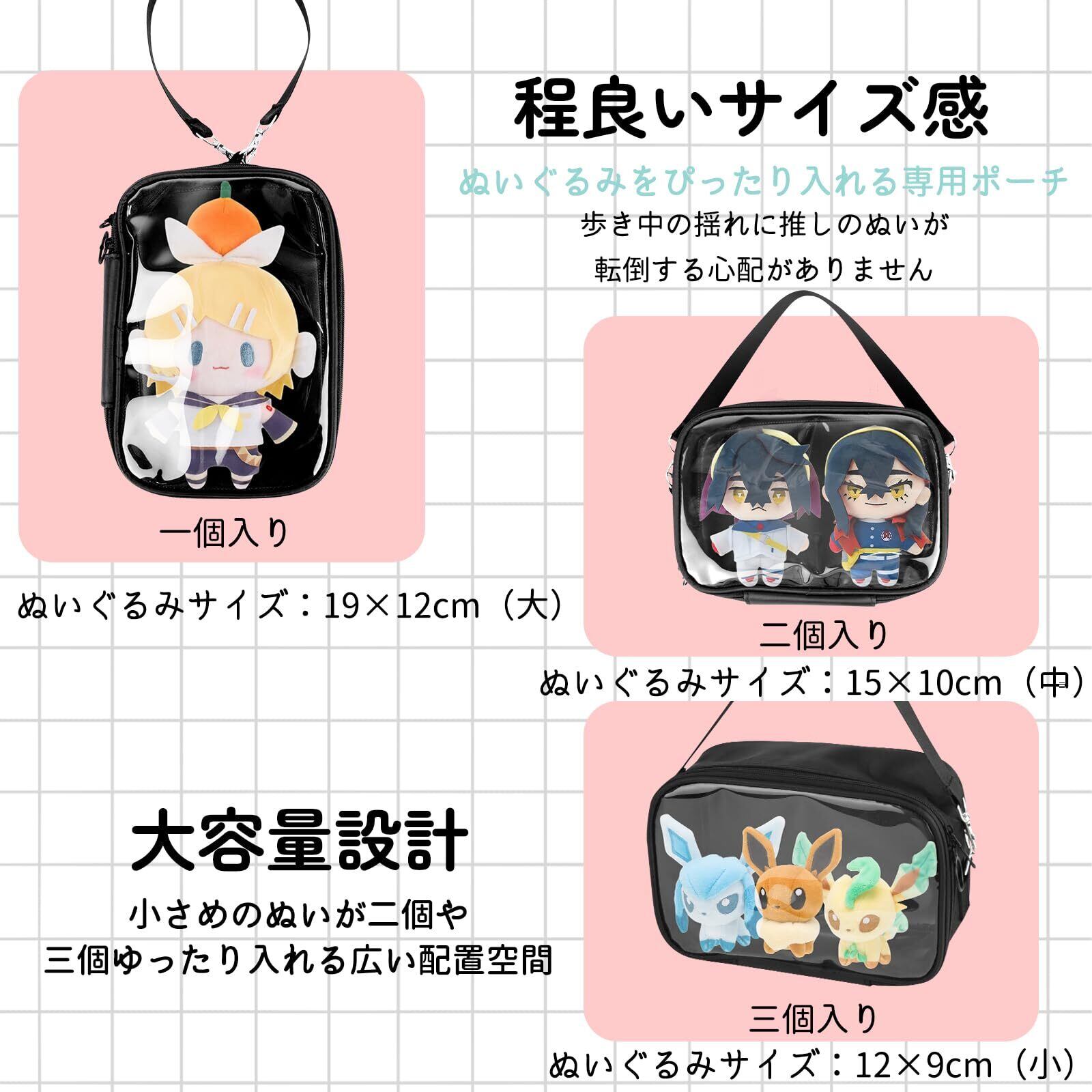 風織商社 ぬいぐるみポーチ 20cm ぬいポーチ 3WAY 痛バッグ ぬいぐるみ クリア 大きめ 鞄 痛バ 推し活 2体入れ 痛バッグ ミニ コレーション 推し活グッズ 人形入れ 地雷 イベント 持ち運び 透明PVC 防塵 防水