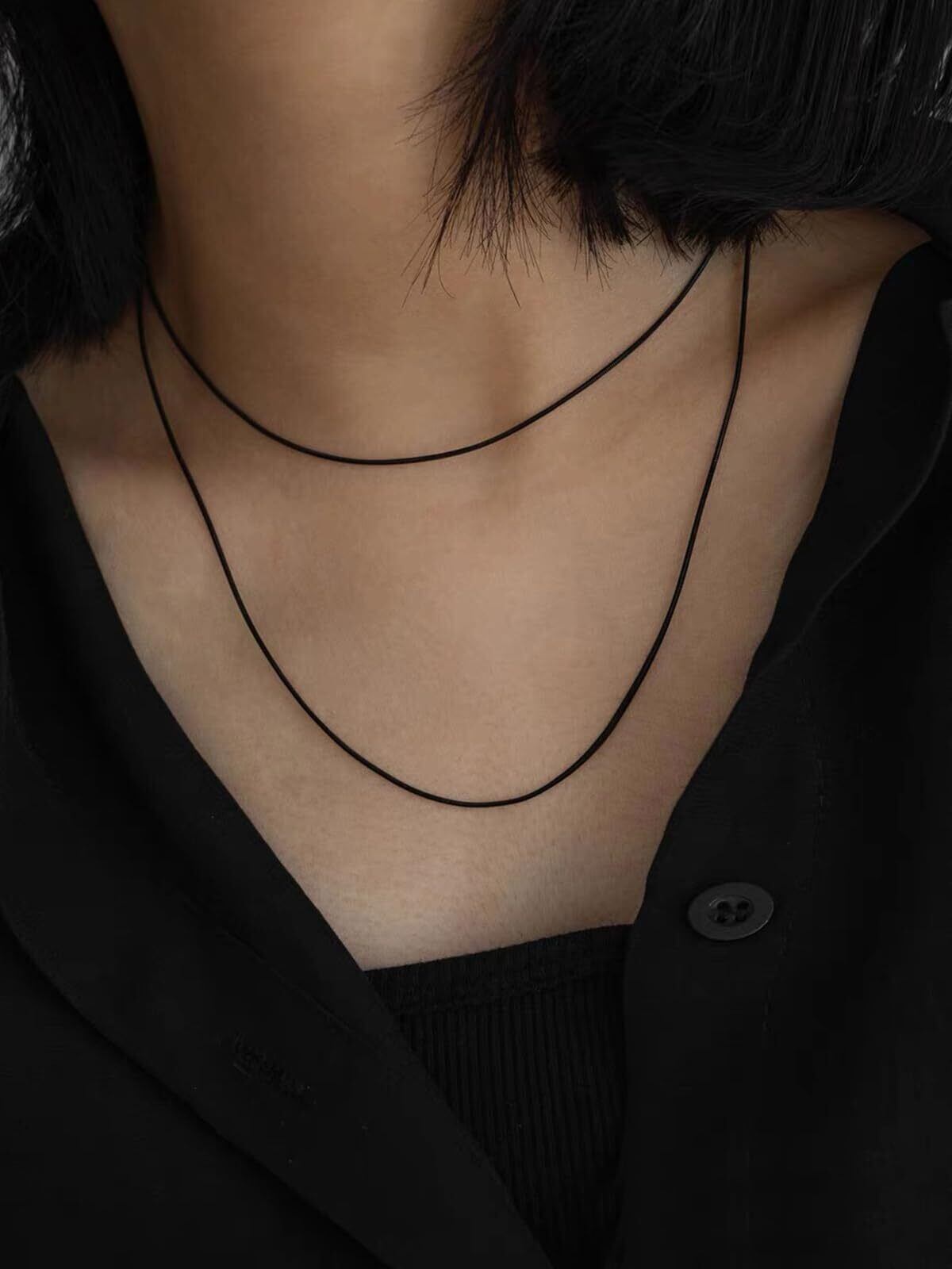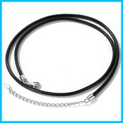[ChainsHouse] 紐ネックレス レディース チェーンのみ 黒 ブラック 指輪用ネックレスチェーン 細め ワックスコード (1mm 45cm+5cm)