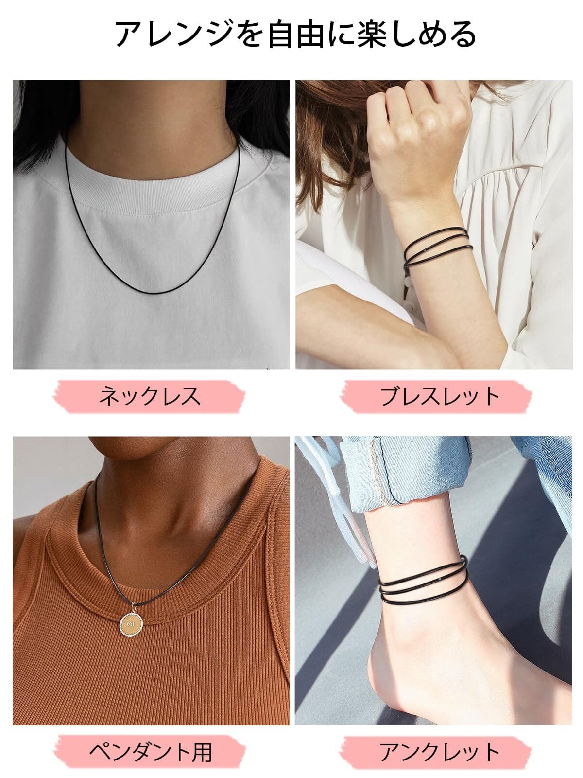 【紐ネックレス】カジュアルからフォーマルなスタイルまで幅広く活躍できる紐ネックレスです。