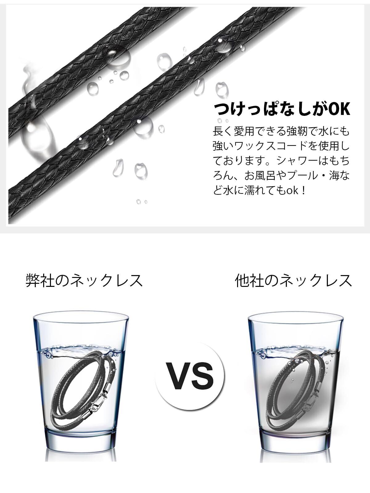 【つけっぱなしネックレス】ネックレスの紐には長く愛用できる強靭でに水に強いワックスコードを使用、お風呂や海などでもつけっぱなしOK!留め具とアジャスターにはお肌に優しいシルバー925を採用!敏感肌の方でもお使いいただけます。