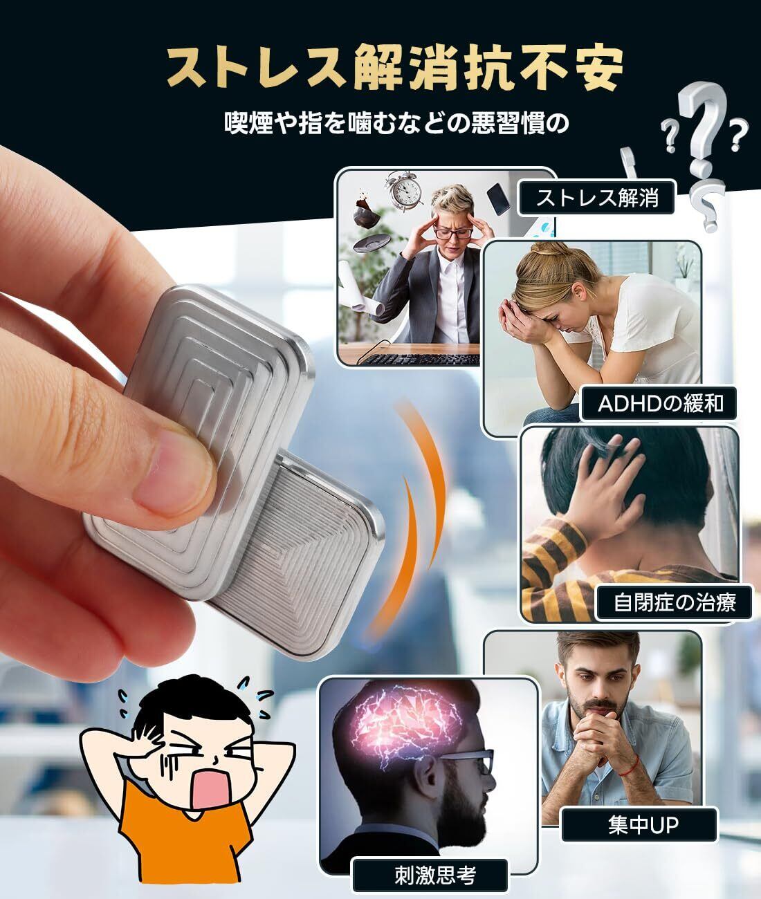 【ストレスリリーフアイテム】身体的な痛みや精神的な疲れを和らげる効果があり、イライラや不安の軽減にも効果的です。集中力の向上や注意の転換にも最適で、心地よいリラクゼーションを提供します。