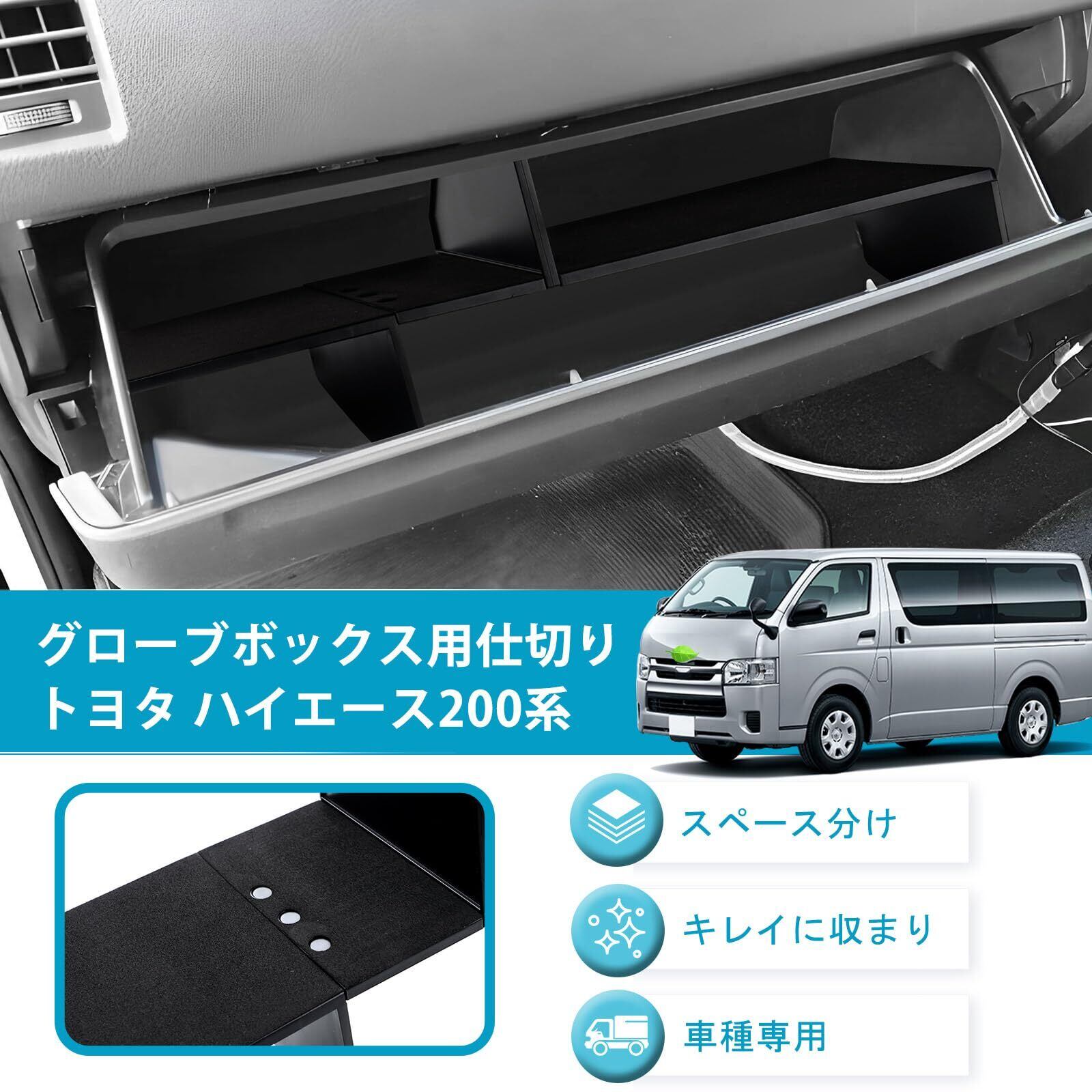 Auto Spec トヨタ ハイエース200 助手席 標準ボディ専用 グローブボックス 層状 パーティション 収納ボックス 仕切板 センターコンソール トレイ 仕切り 室内 整理 収納 小物入 内装 パーツ アクセサリー (ブラック)