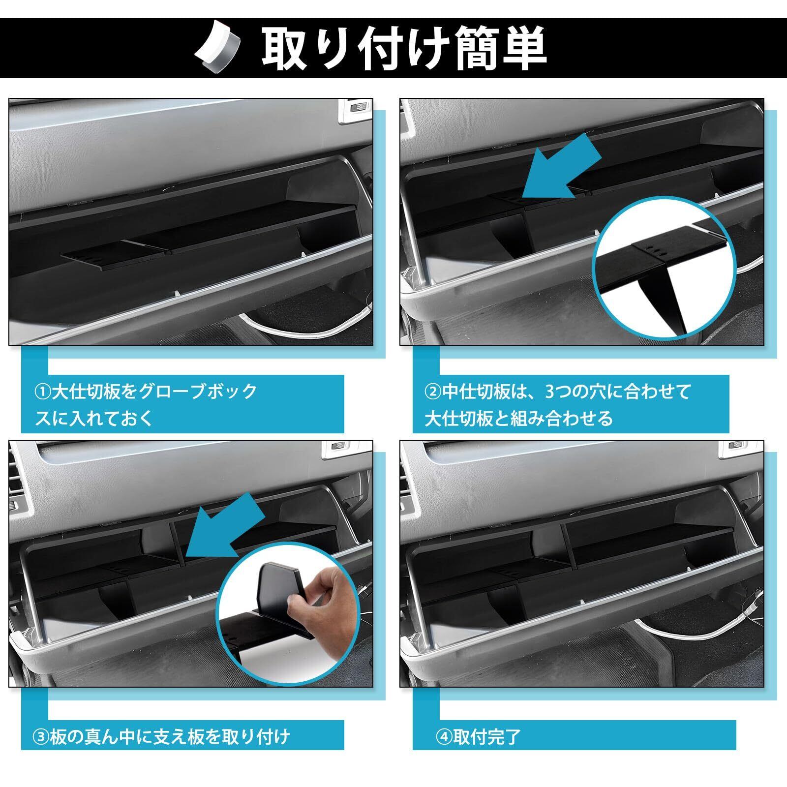 4.【取付簡単】:仕切板を順番にグローブボックスに入れて、位置を調整して取り付け完了です。