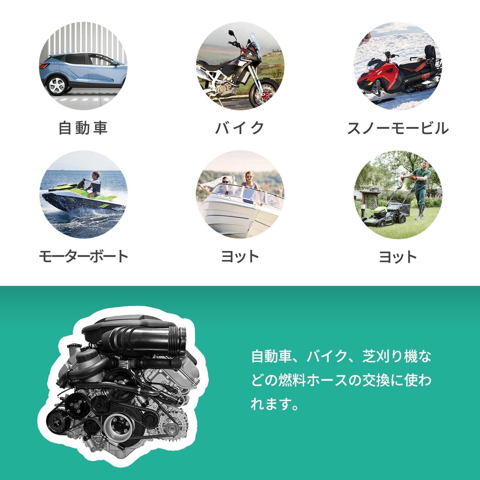 Pronese 燃料ホース 内径8mm 全長1m フューエルホース ニトリルゴム(NBR)ホース 三重構造 耐油・耐圧・耐熱ホース 高性能ホース 専用ホースクランプ 6個付き 自動車 · バイク用