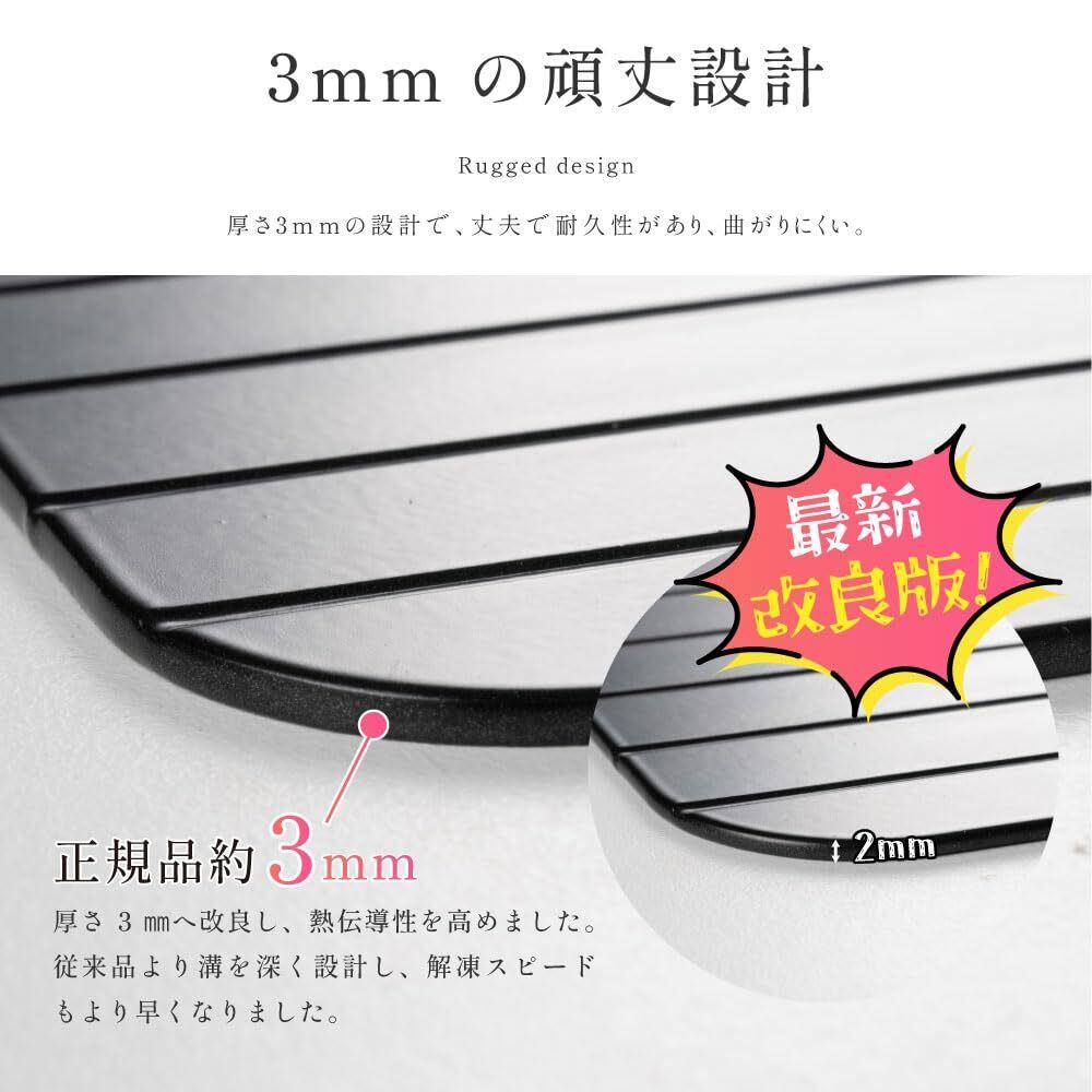 【アルミ合金使用】アルミニウムは金属の中でも熱伝導率が高いため、プレートの上に食材を置いておくだけで、自然解凍よりも早く解凍できます。冷凍食材の冷気を吸収し、効率よく放出して、むらなく解凍。厚さ3mmの設計で、丈夫で耐久性があり、曲がりにくい。