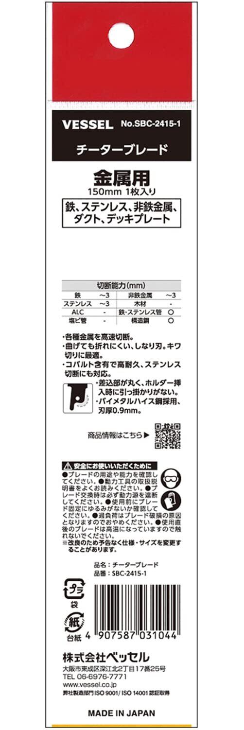 ベッセル(VESSEL) セーバーソーブレード チーター 金属 鉄工用 24山 刃厚0.9mm 全長150mm SBC-2415-1