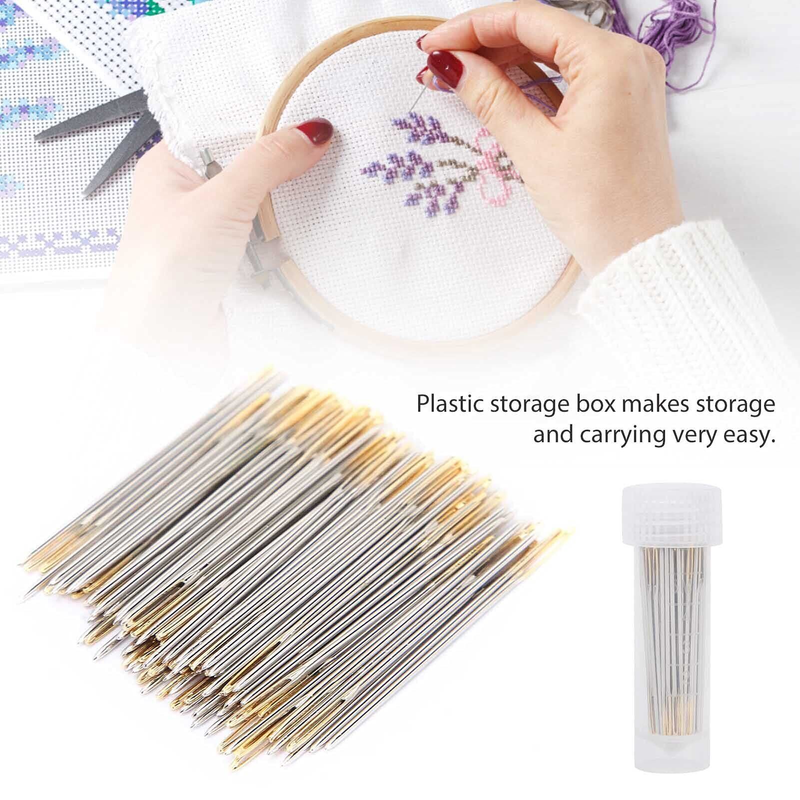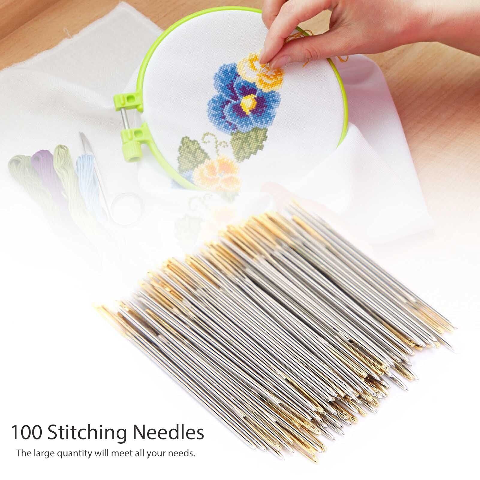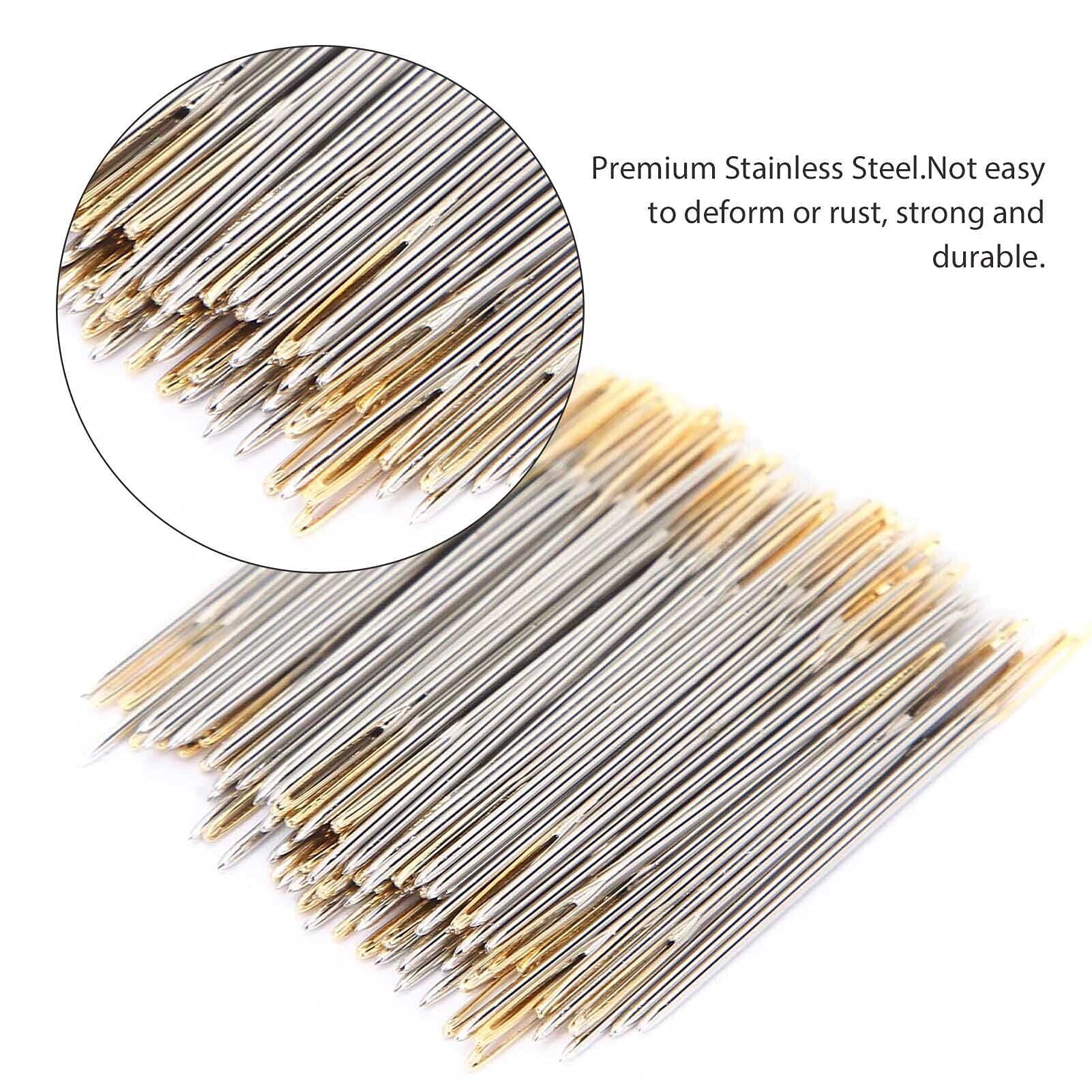 【豊富な数量】 刺繍針,このラージアイステッチ針セットには100本の針が含まれており、すべてのステッチニーズを満たすのに十分な供給量を提供します。 クロスステッチ、裁縫、その他の用途を問わず、あらゆるプロジェクトに取り組むのに十分な針が揃っています