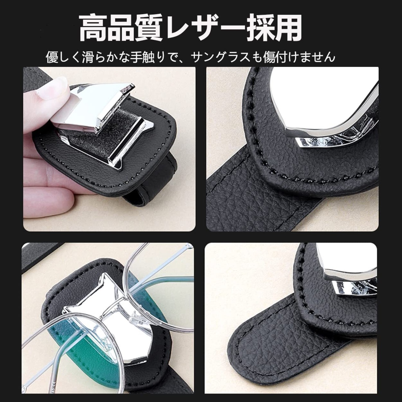 ハリアー 用 メガネホルダー レザー サングラスクリップ カーサンバイザー 用 サングラス 眼鏡 チケット カード クリップ ホルダー メガネクリップ 車眼鏡ホルダー 取り付け簡単 選べる4色 (Black)