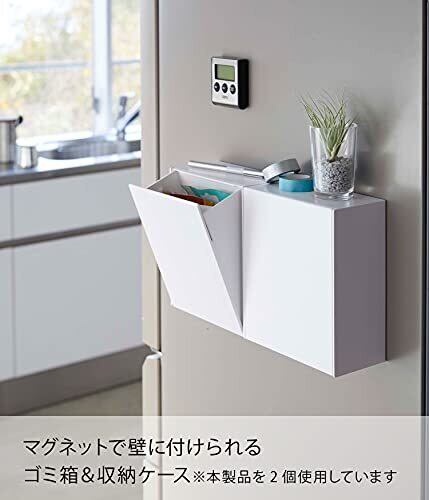 山崎実業(Yamazaki) マグネット ダストボックス & 収納ケース ホワイト 約W17XD8.7~16XH20cm タワー フラップ式 小物収納 ゴミ箱 5431