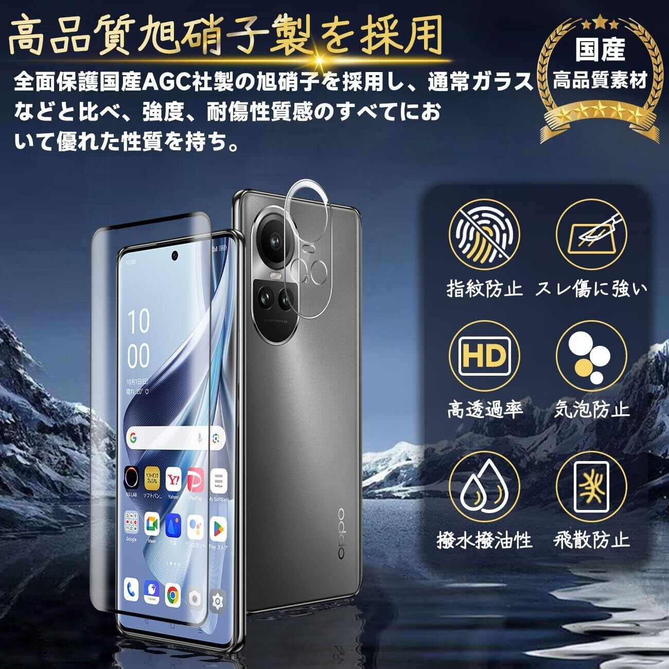 対応 OPPO Reno 10 Pro 5G フィルム 【2* Reno10 Pro 5G 強化ガラス + 2* Reno10 Pro 5G レンズ保護フィルム 】Reno 10Pro 5G ガラスフィルム 指紋ロック解除対応 ウィッシュ 高光沢 さらさら OPPO Reno10Pro 5G 保護フィルム 液晶 ケース カバー 日本旭硝子素材採用 3D Touch対応 指紋認証鋭敏 9H硬度 厚さ0.26mm超薄型 高透過率 気泡なし ラウンドエッジ加工 簡単貼り付け