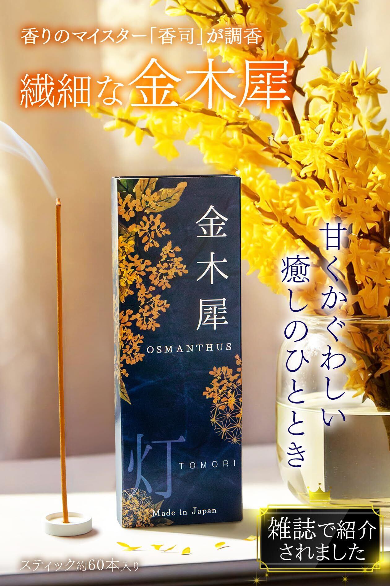 【贅沢に仕立てた金木犀のかぐわしさ】お香 金木犀 線香 約60本入 日本製 天然由来 淡路島産 キンモクセイ インセンス 香立なし ギフト 母の日 【長さ:約13.5cm / 燃焼時間:約30分】灯 TOMORI