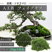 リアルな見た目を追求した人工苔「フェイクモス」。30gと150gのサイズ展開、グリーンとダークグリーンの2カラーをご用意しました。盆栽や鉢植え、庭園、ジオラマの装飾に最適。枯れる心配がないため、手軽に自然な緑を演出できる「クラフトモス」です。