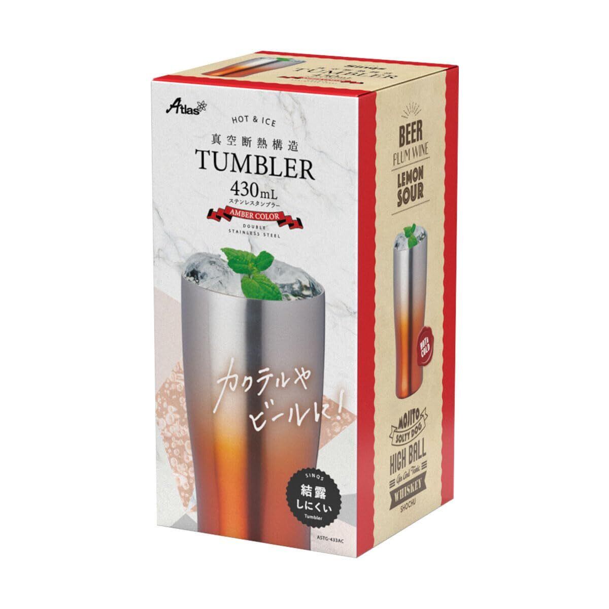 アトラス 保温保冷 ステンレス タンブラー 430ml グラデーションアンバーカラー 真空断熱 お酒 ハイボール ASTG-433AC
