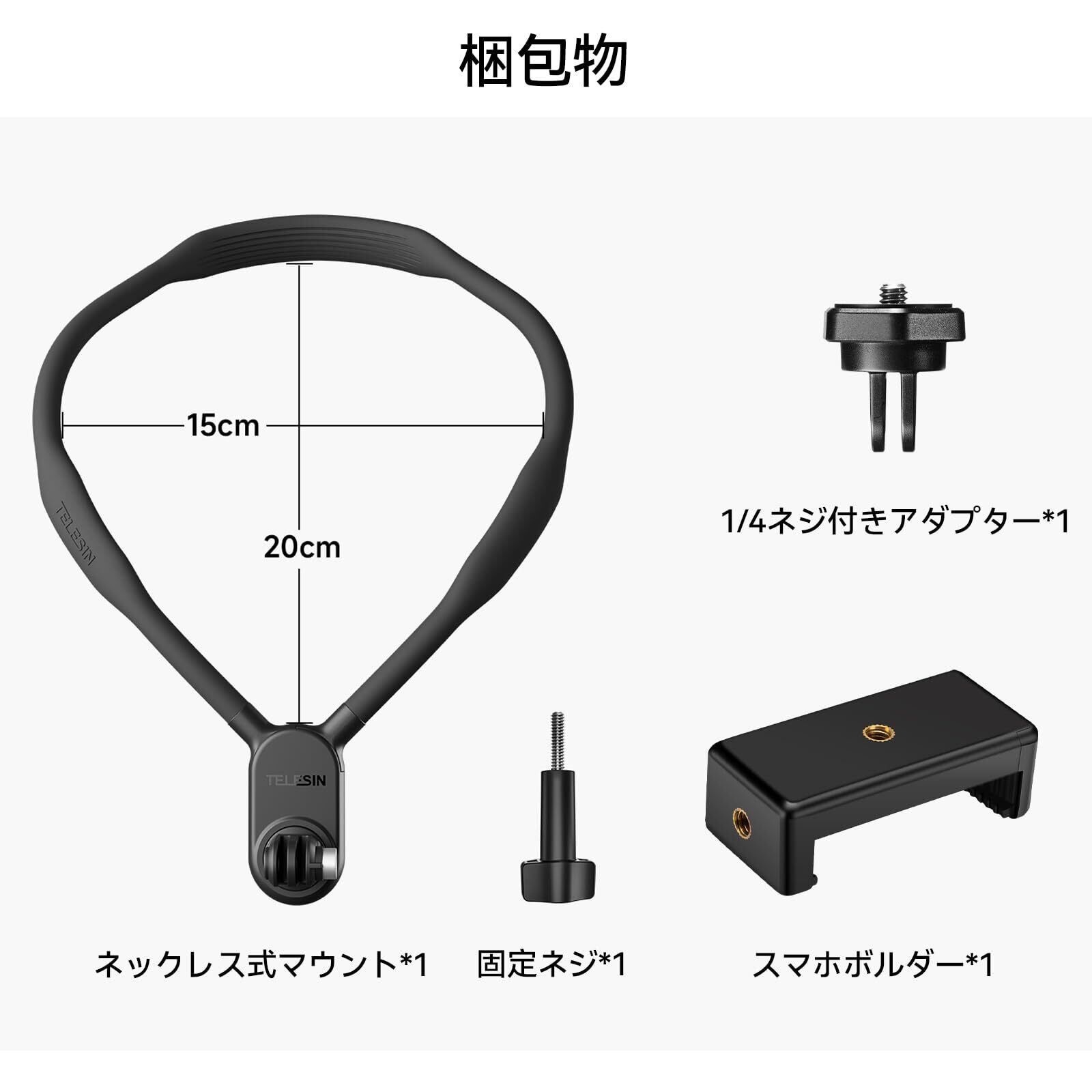 TELESIN ネックPOVマウント GoPro用アクセサリー 電話ホルダー 釣り用首掛け 超軽量上下伸縮可能 形状自由変化 縦様・横様撮影可能 落下防止 便利 シリコーン製で アクションカメラ/スマホ/hero 13 12 11 10 9 / Dji actionに対応