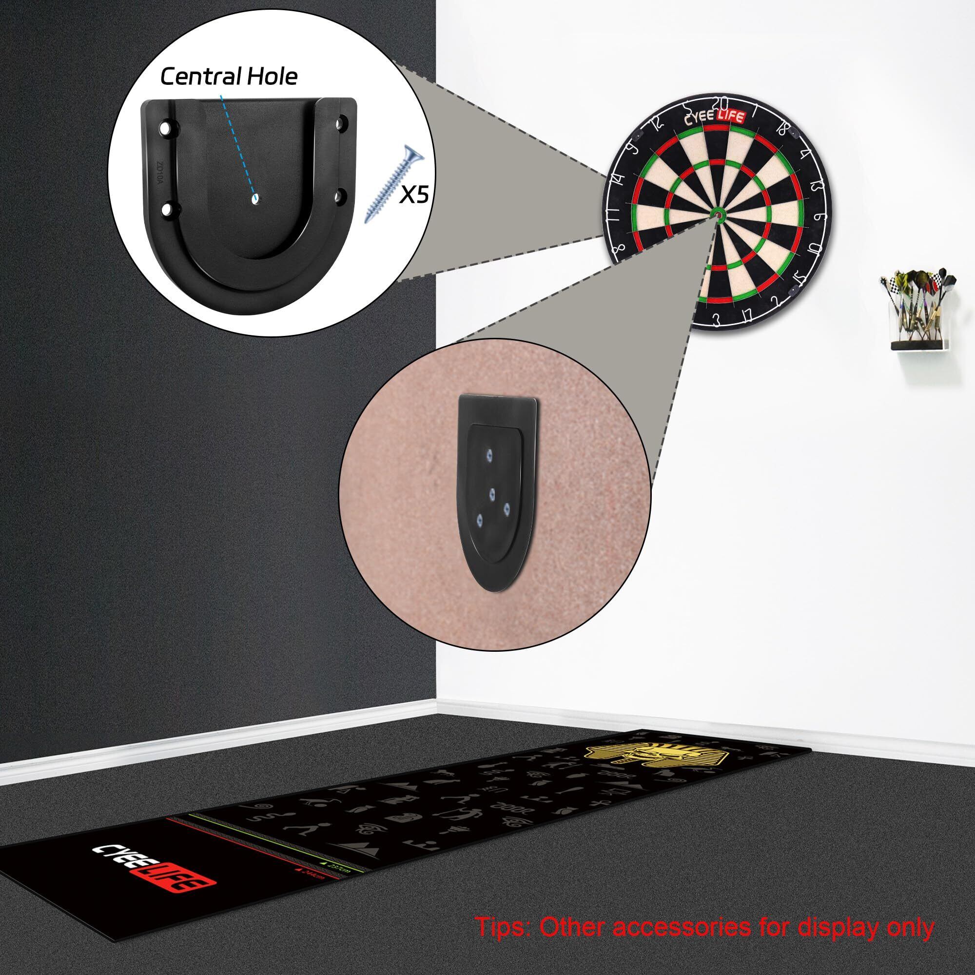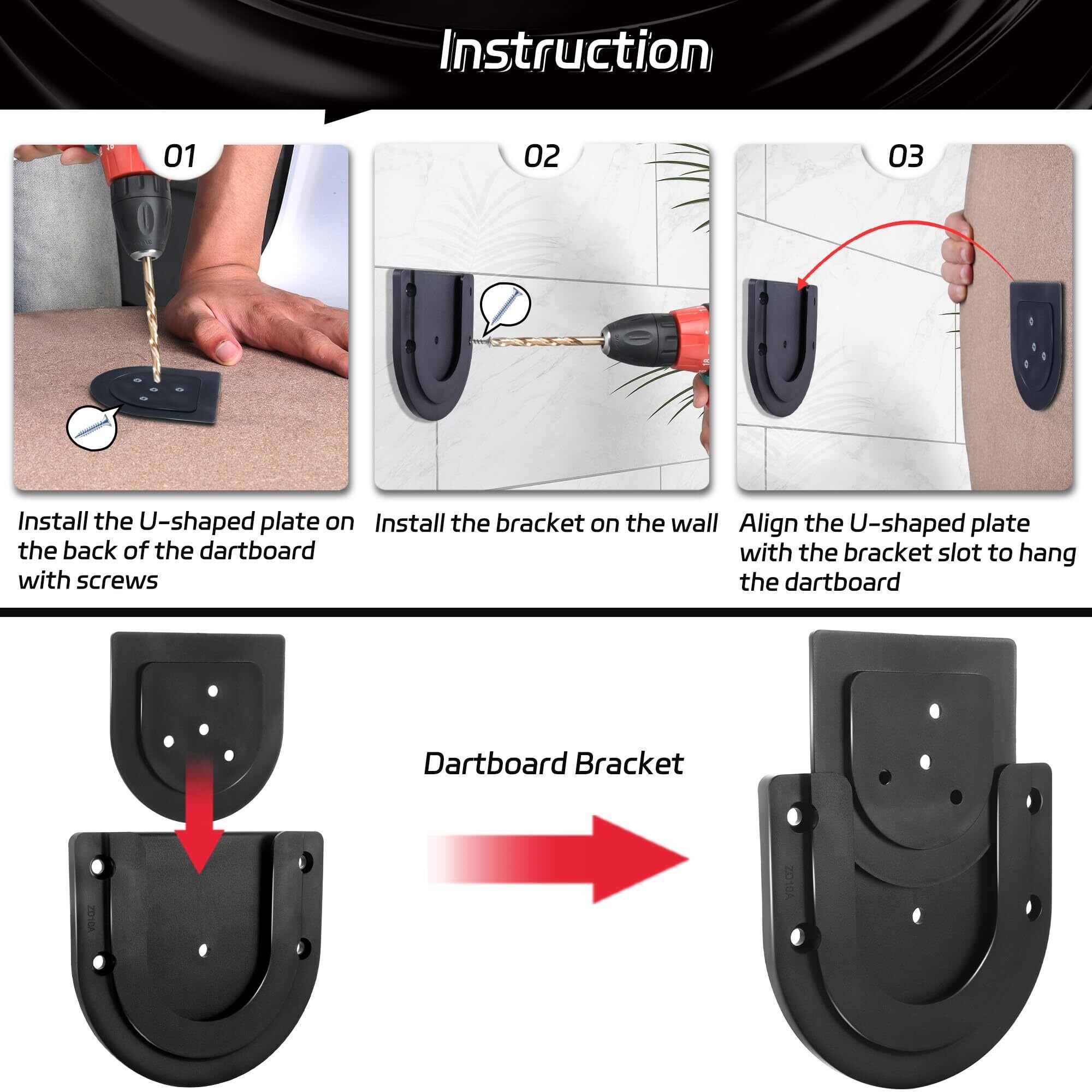 【幅広い用途】: ダーツボード取り付けブラケット吊り下げキットは、壁、ドア、バックボードなどに適しており、ダーツの楽しさを楽しむことができ、他のゲームや日常の修理にも使用できます。