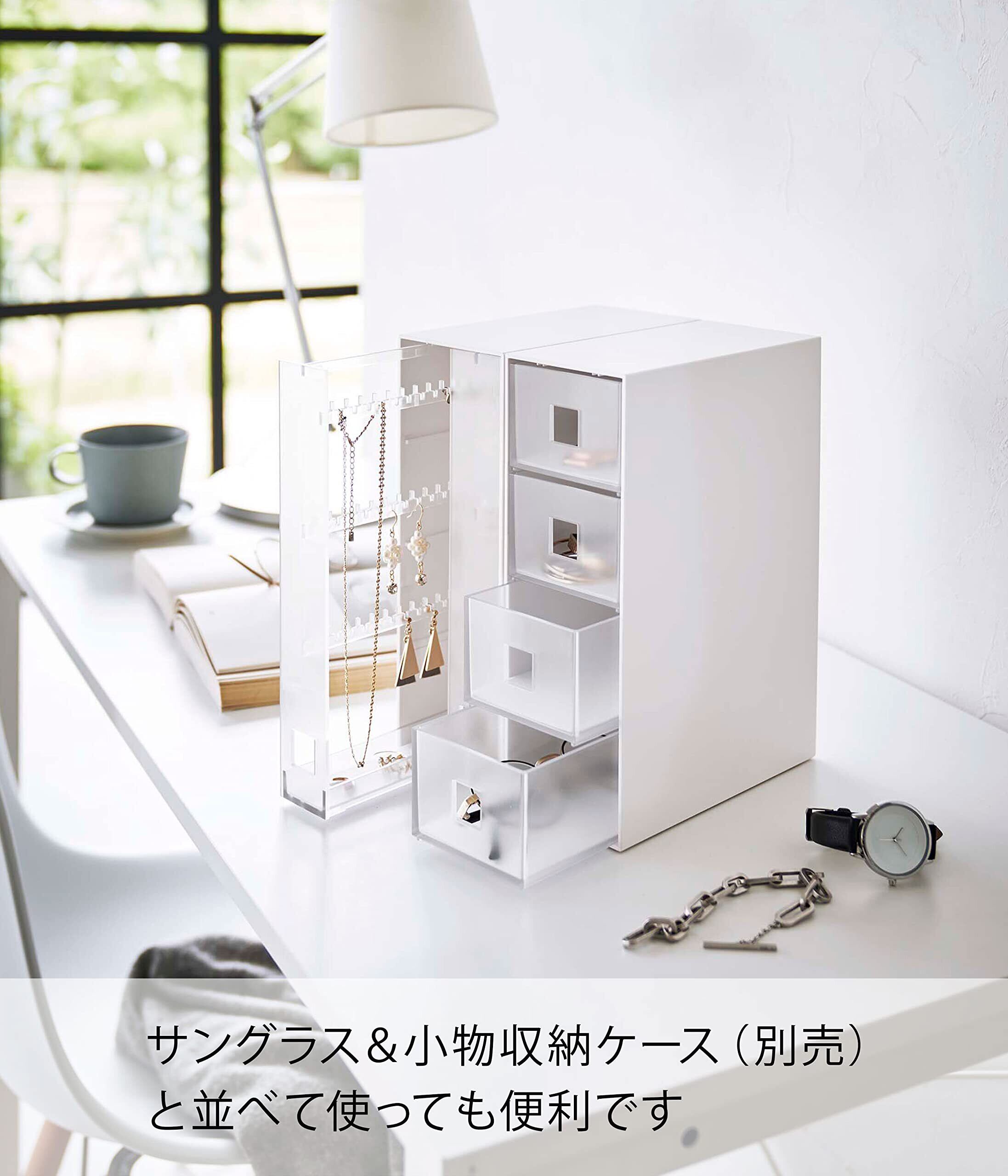 山崎実業(Yamazaki) ネックレス & ピアス 収納ケース ホワイト 約W8.8×D17.5×H25.3cm タワー tower 大容量 アクセサリー収納 引き出し 6131