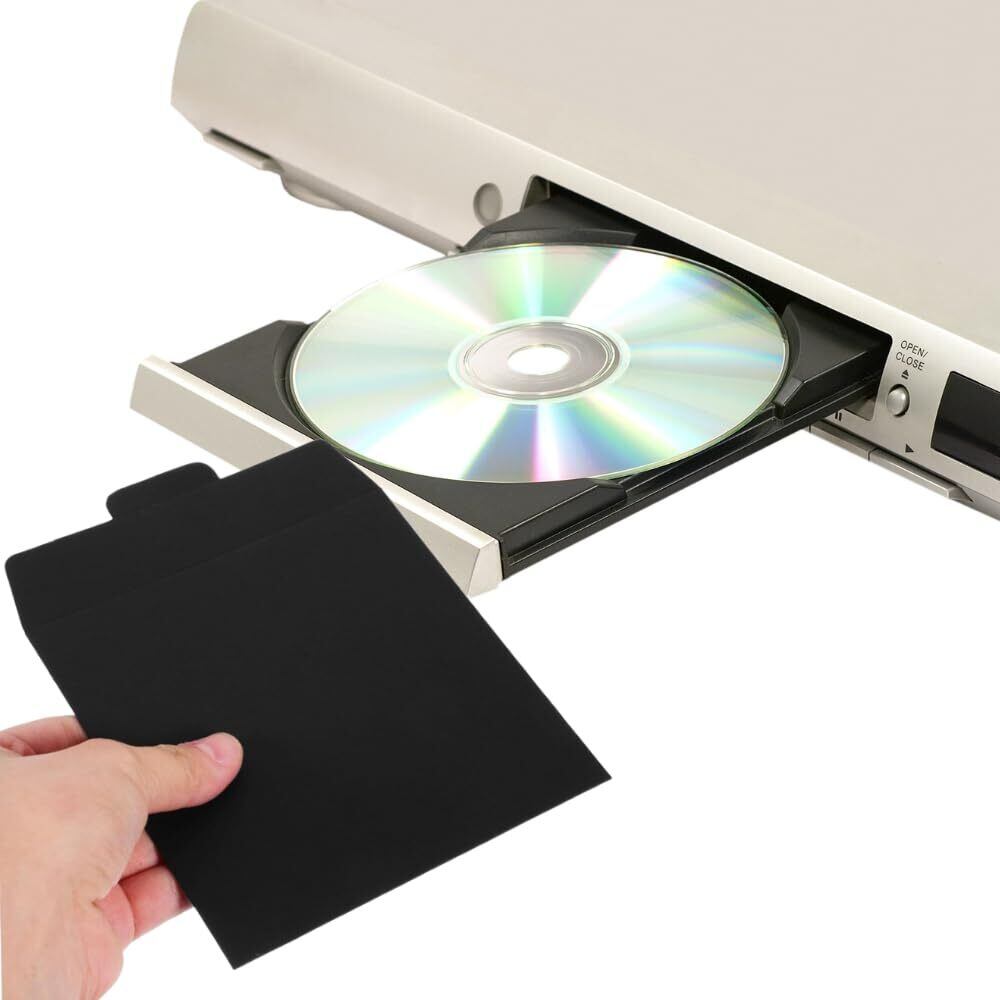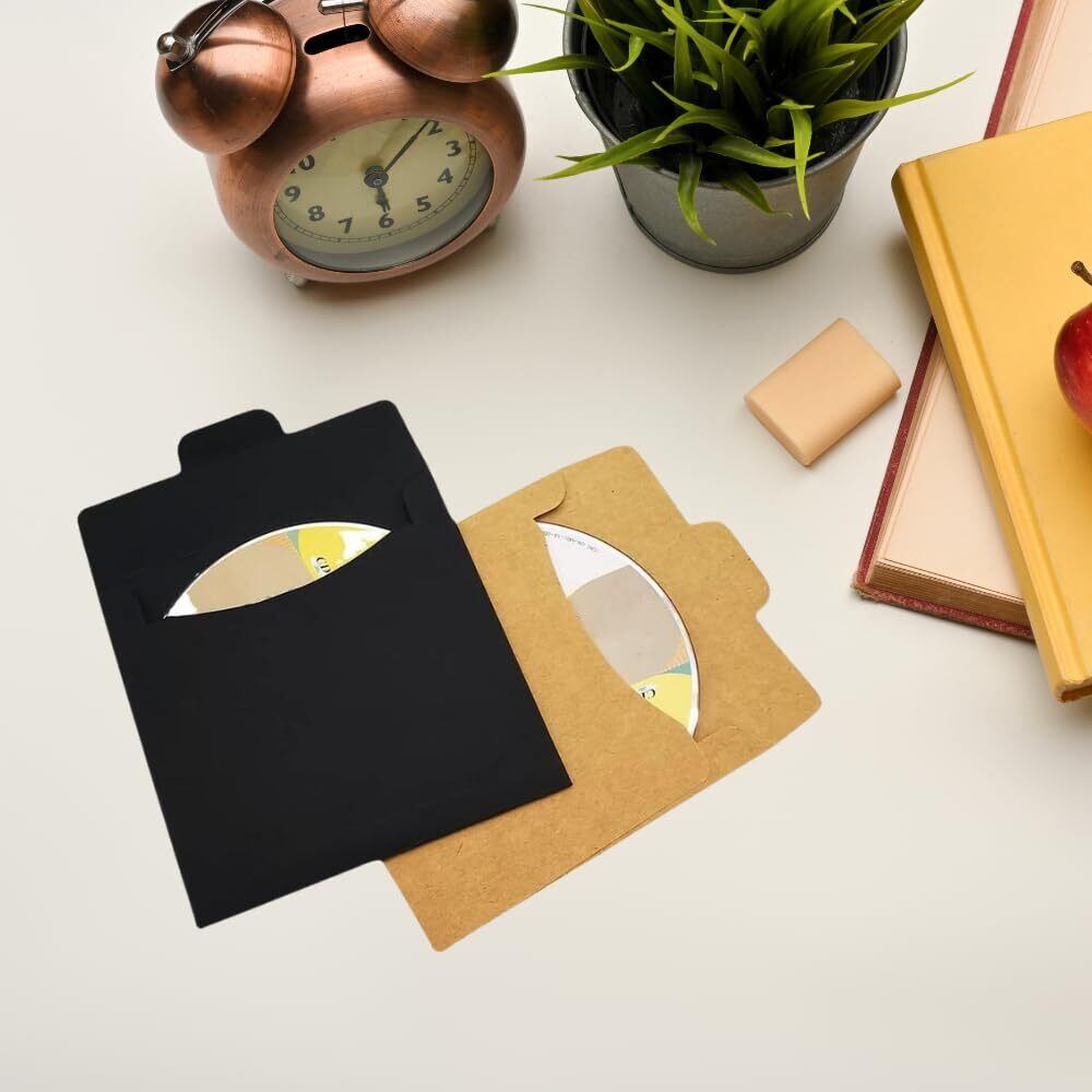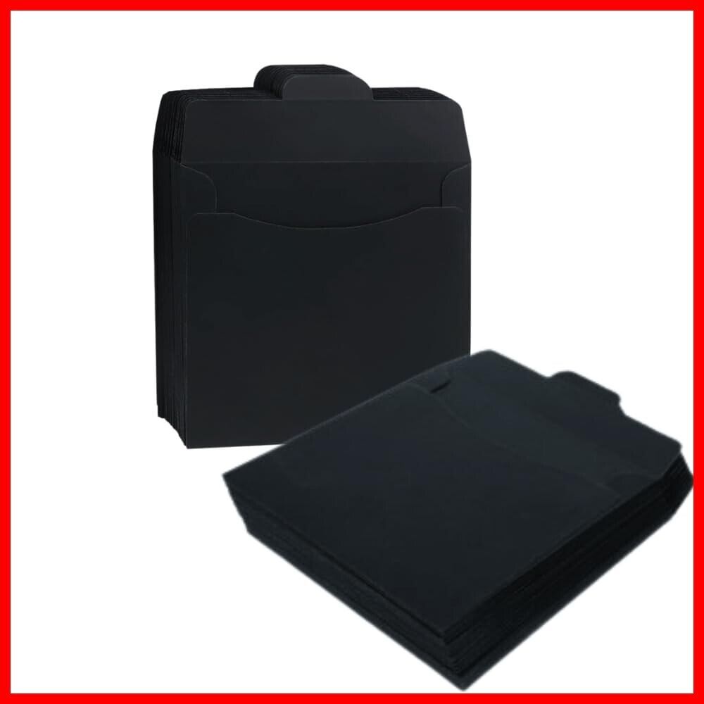 CDケース クラフト紙 DVD 収納 ディスクスリーブ ケース カバー 封筒 包装 無地 12.5×12.5cm 50枚 セット (ブラック)