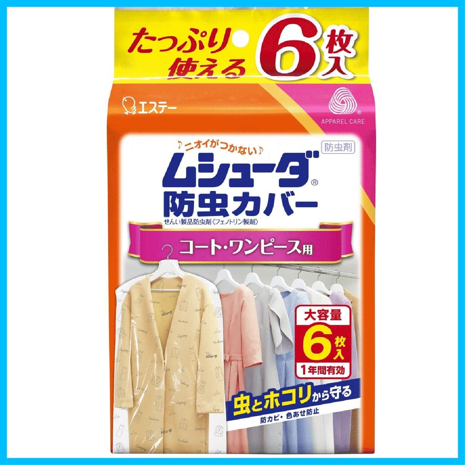 ムシューダ 防虫カバー 衣類用 防虫剤 防カビ剤配合 コート ワンピース用 6枚入 1年間有効 衣類 防虫 衣類カバー