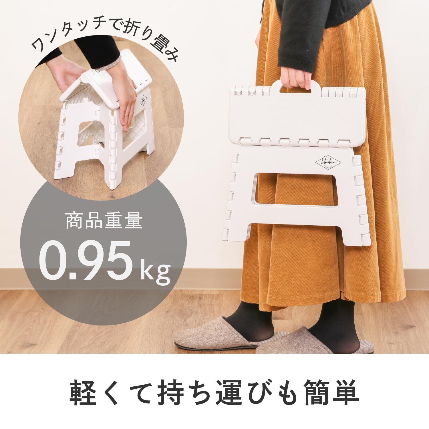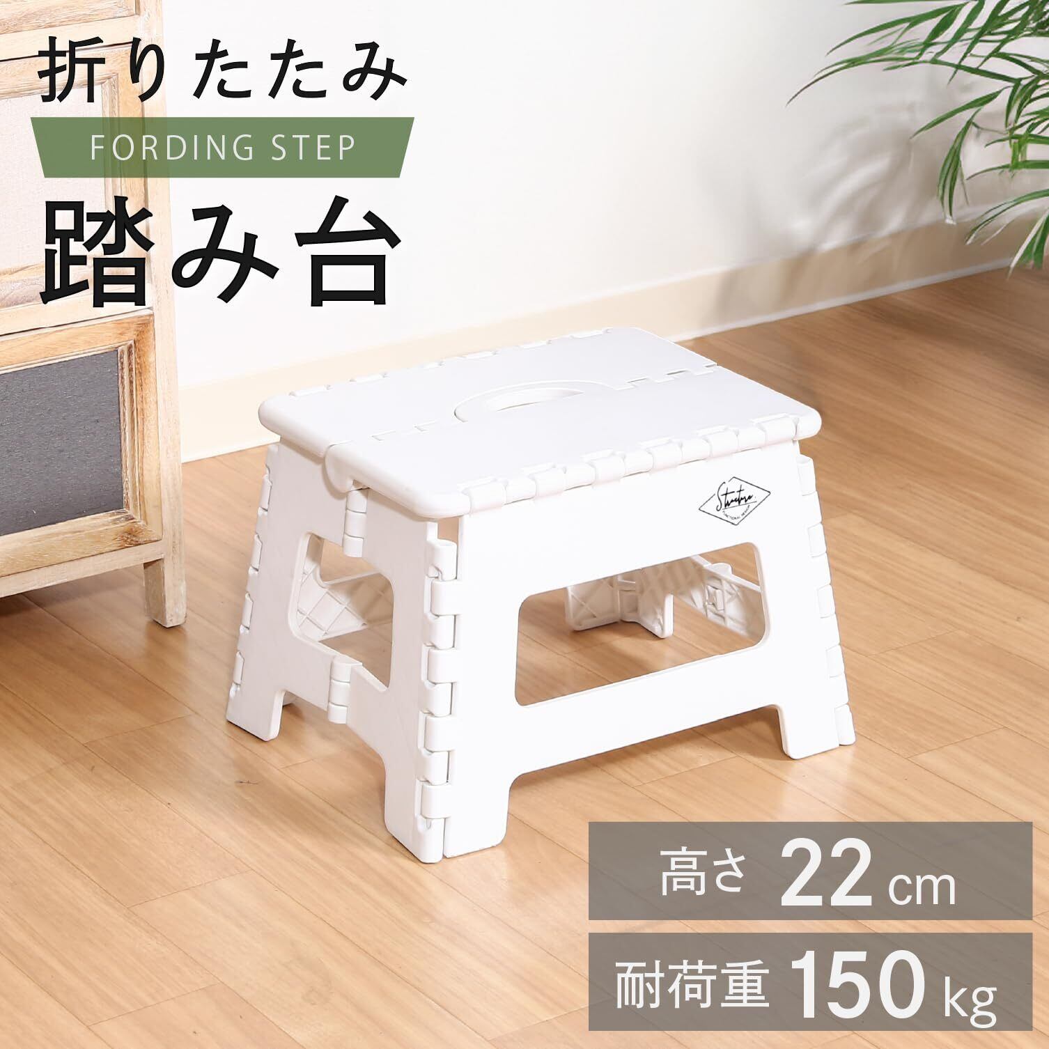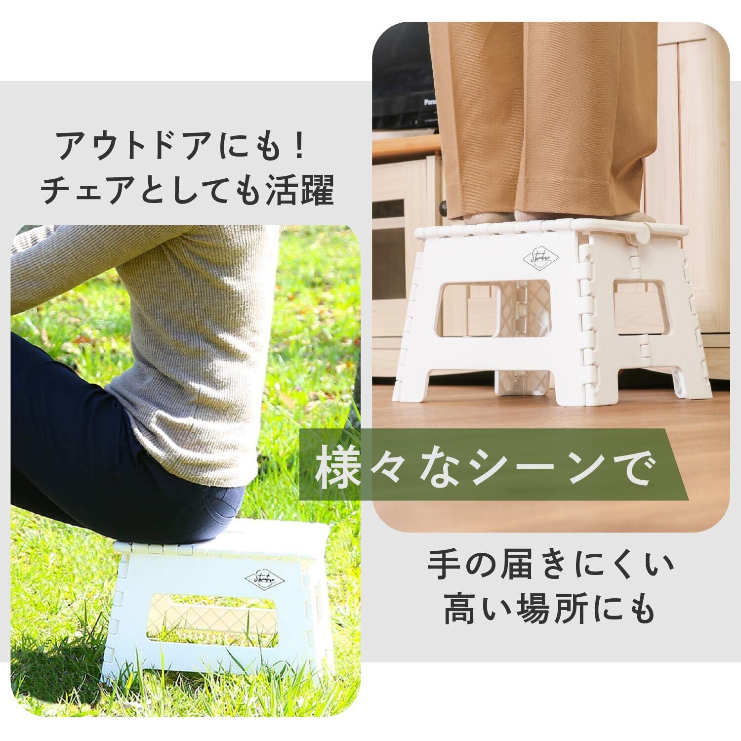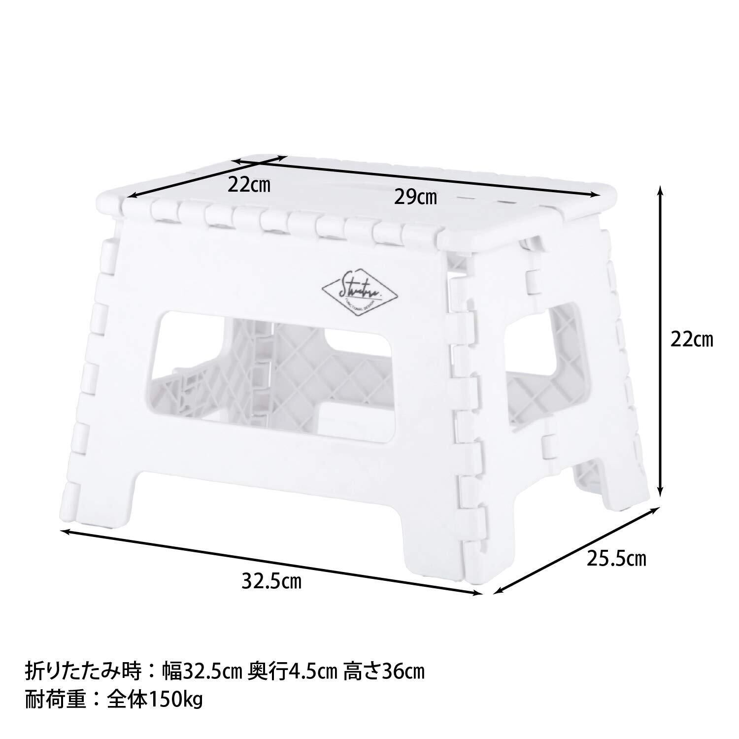不二貿易(Fujiboeki) 折りたたみ椅子 踏み台 ステップ 幅32.5×奥行25.5×高さ22cm ホワイト アウトドア コンパクト スツール 耐荷重150kg 86072