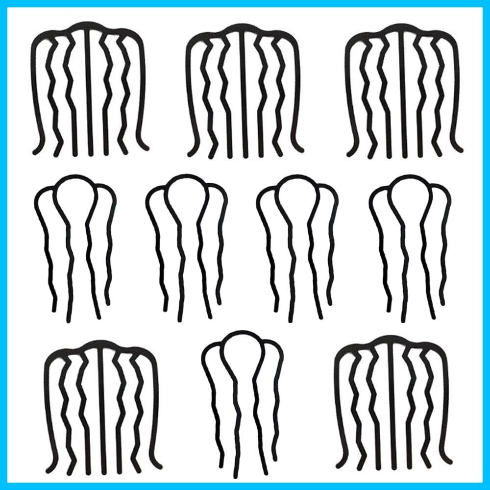 YFFSFDC 夜会巻き インナーヘアアクセ お団子 髪飾り 髪ピン 夜会巻きコーム 簡単 まとめ髪 ヘアアレンジ 結婚式 入学式 卒業式 ブラック 10個セット