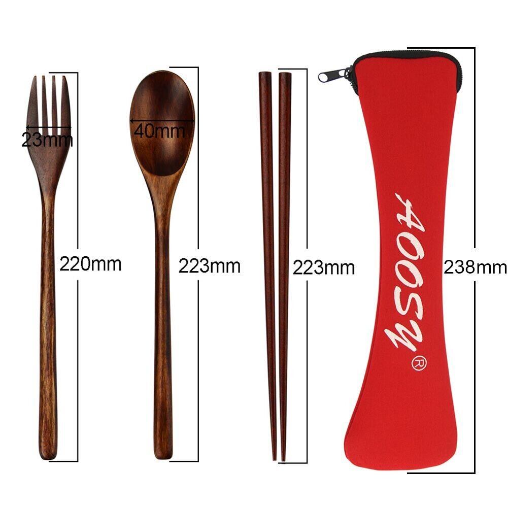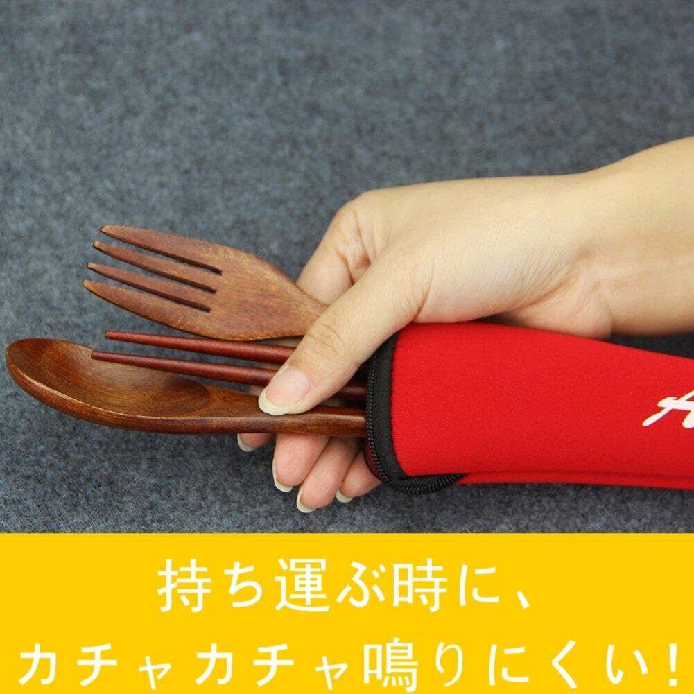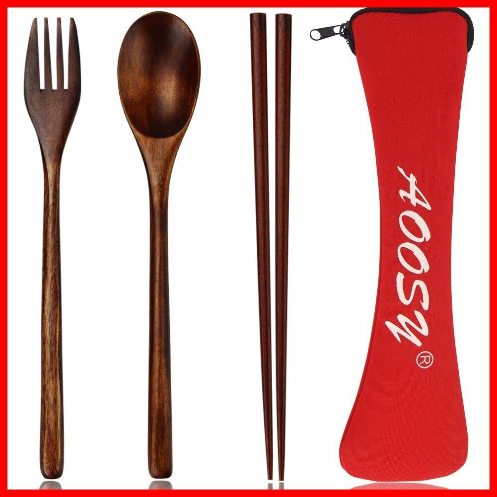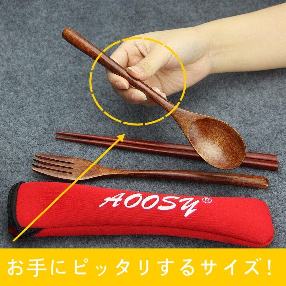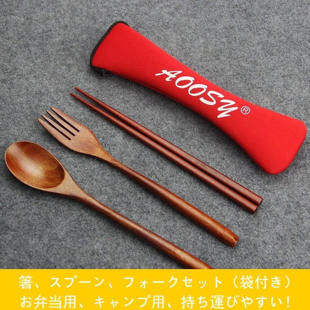 AOOSY弁当用 抗菌カトラリーセット 和風木製箸 スプーン フォーク 箸袋4点セット 天然漆塗りディナーセット 学生用 大人用食器 キャンプ 花見 ピクニック 学校用 通勤用食器 持ちやすい