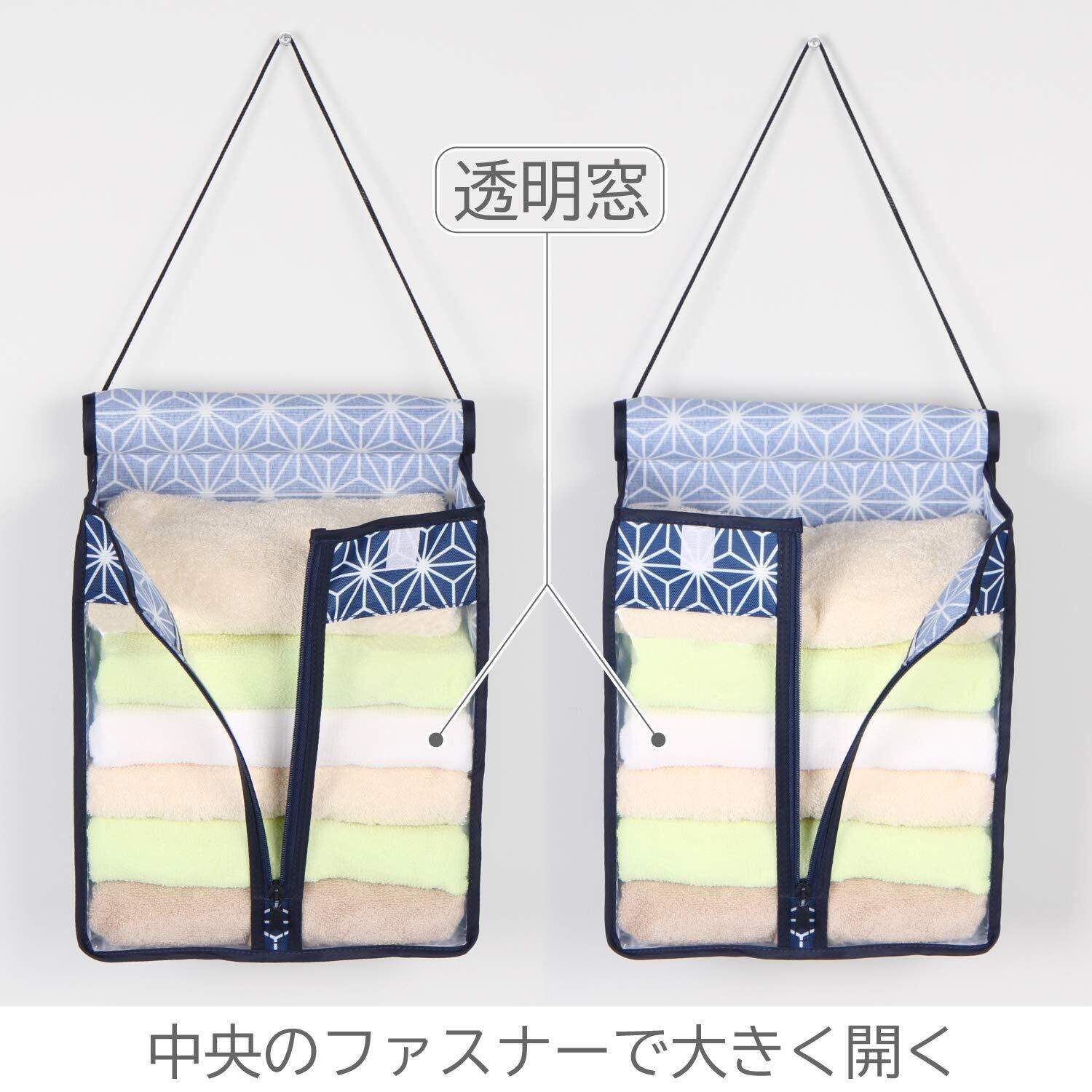 アストロ タオル 収納ケース ネイビー 和柄 タオルストッカー 吊り下げ 壁掛け 保管 ホルダー 821-81 中
