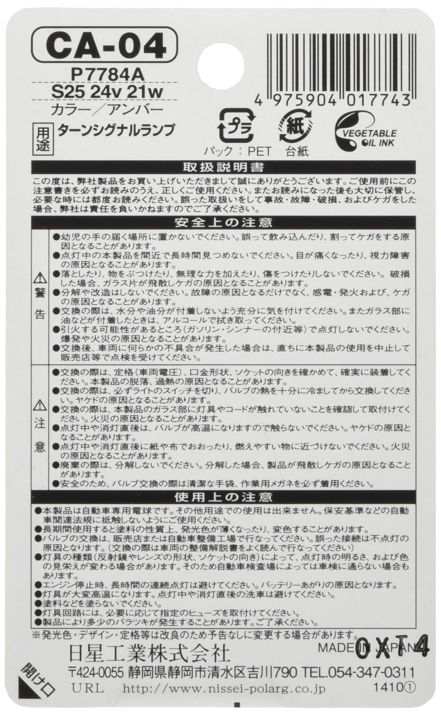 POLARG 耐振仕様 補修バルブ ターンシグナルランプ 口金ピン・角度違い S25 24V 21W アンバー CA-04 P7784A