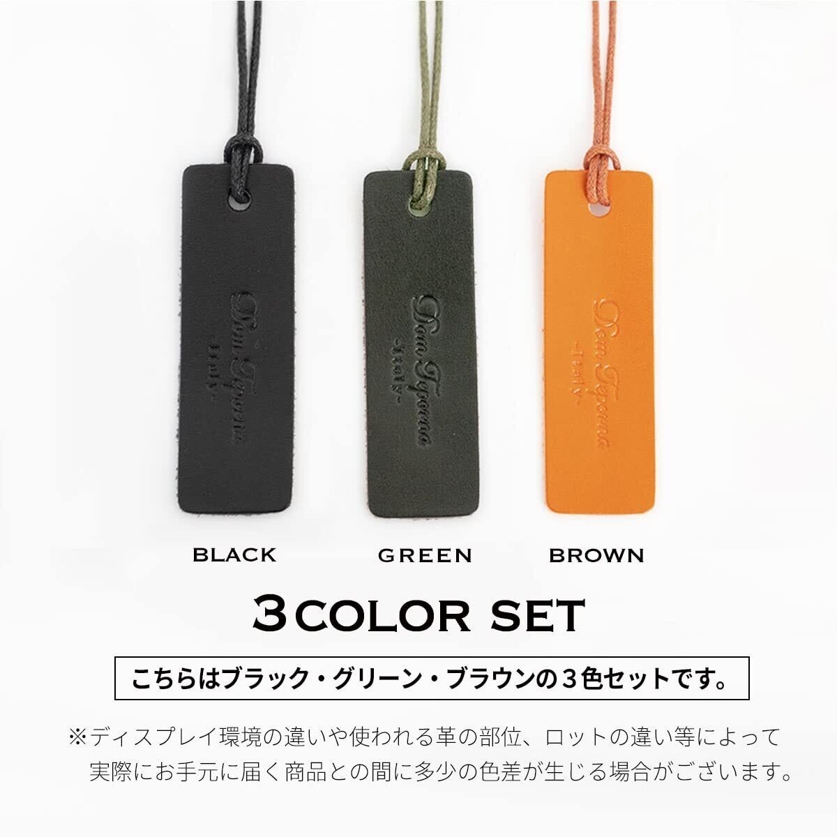 [Dom Teporna] しおり 本革 イタリアンレザー 紐付き ブックマーク おしゃれな読書に ブックマーカー 栞 3点セット ブラウン グリーン ブラック