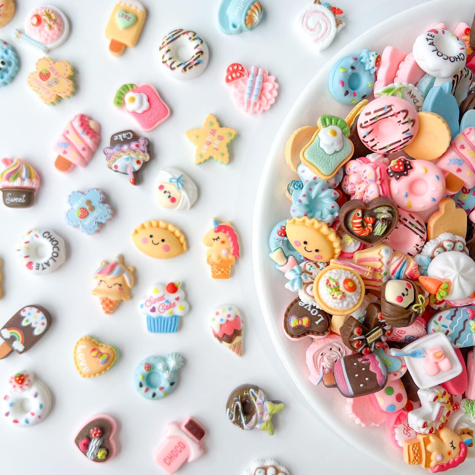 TANOKOX デコパーツ ミックス スイーツ キャンディ 食べ物 レジンパーツ ホイップデコ アクセサリー イヤリング ヘアゴム パーツ チャーム 手芸 推し活 子供(ミックスカラー)