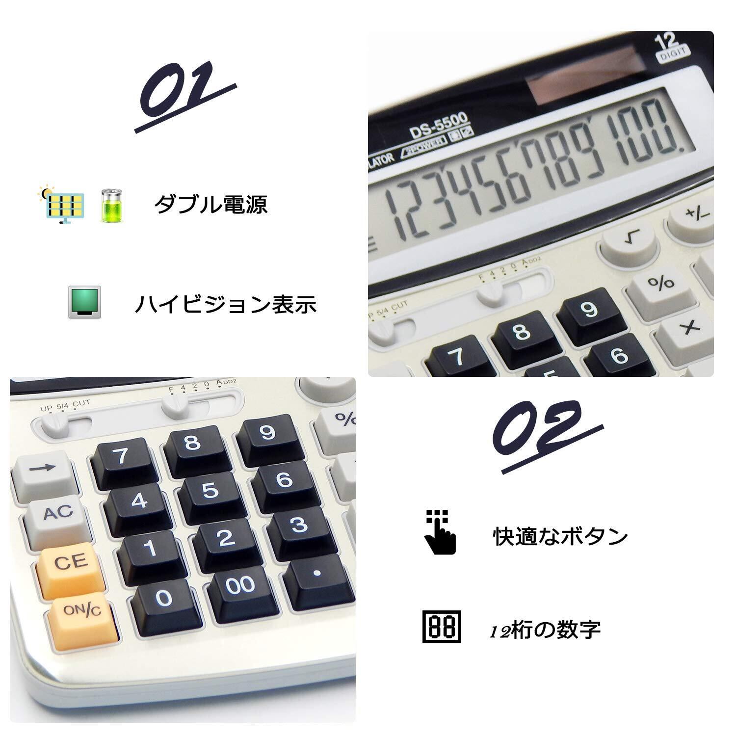 TOSSOW 電卓 12桁 大型 オフィス 簿記 ソーラーや電池ダブルパワー電子計算機 携帯 持ちやすい 学生 贈り物