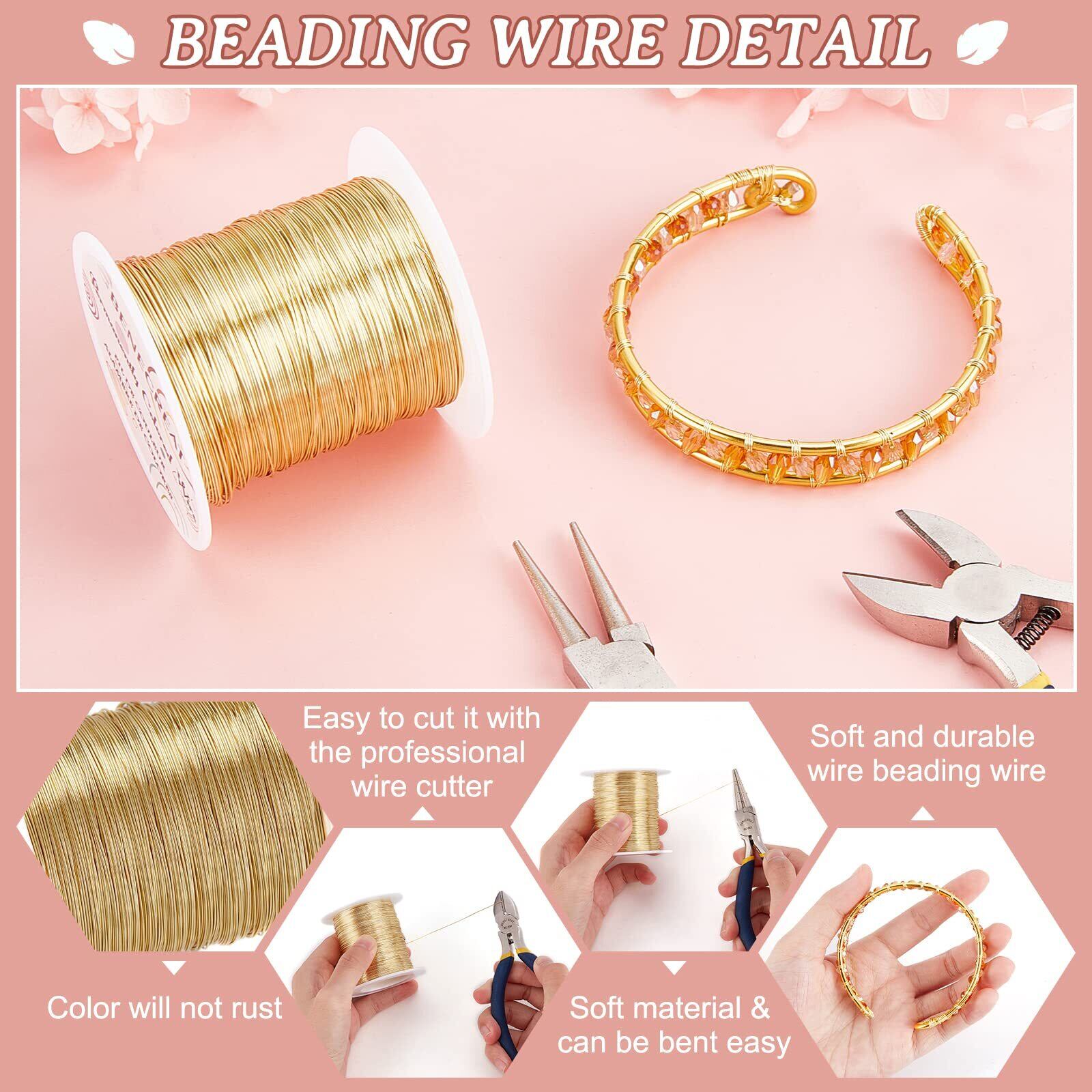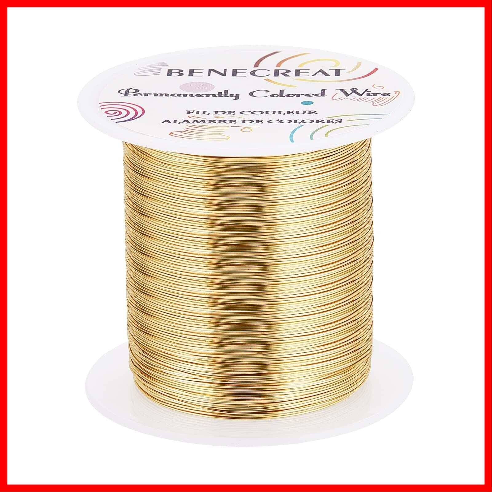 BENECREAT 120m 巻アクセサリーワイヤー 銅製ワイヤー 線径0.4mm 26ゲージ クラフト銅線 アートワイヤー 変色防止 アクセサリーパーツ DIY 手作り 光沢感 アクセサリー用ワイヤー ビーズクラフト ジュエリー作り(ライトゴールド)