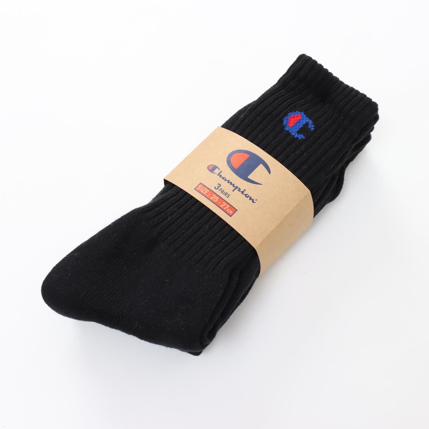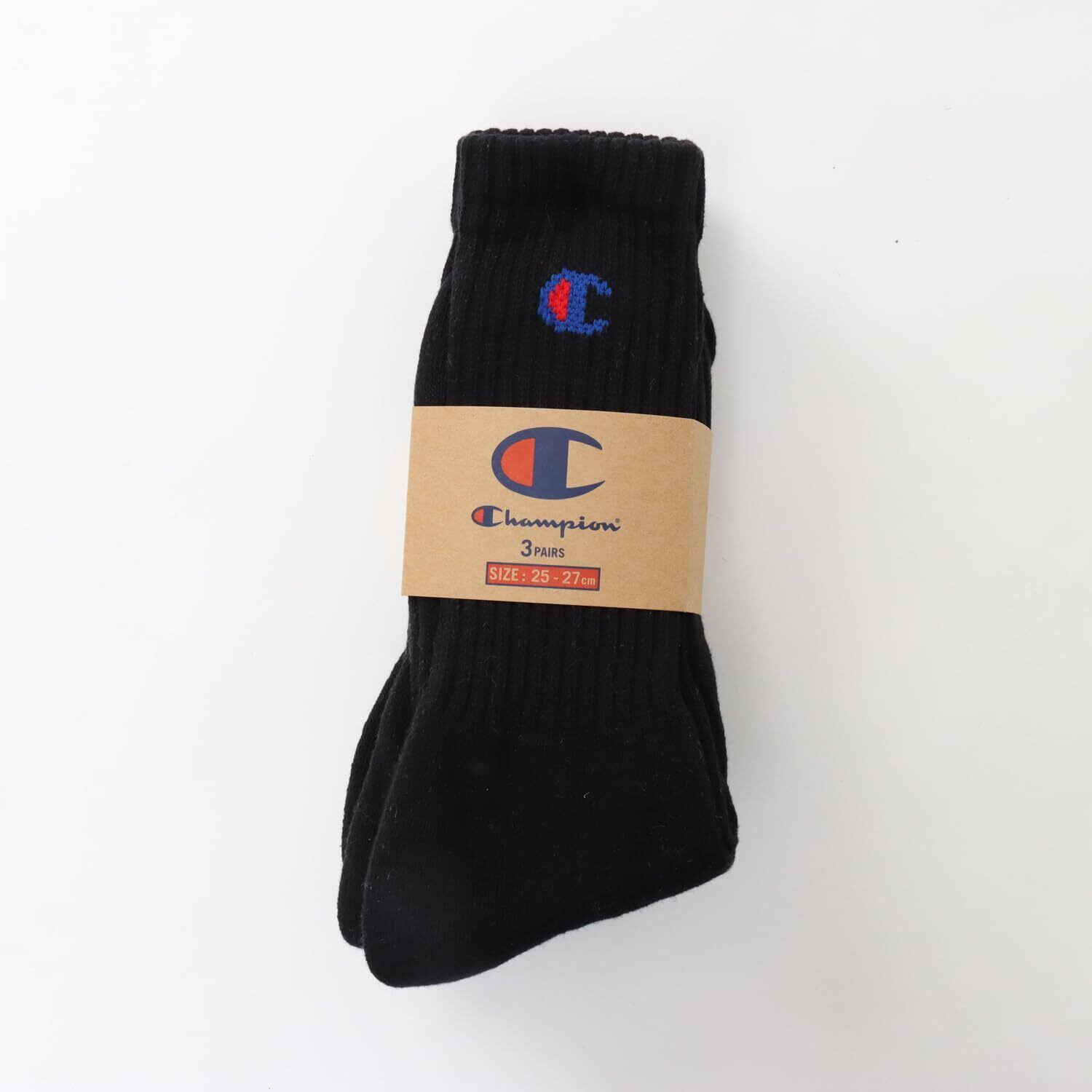 [チャンピオン] ハイソックス 無地ソックス (3足組) フルパイル ワンポイントロゴ フルレングスソックス3P CMSCY001 メンズ ブラック 25.0-27.0 cm